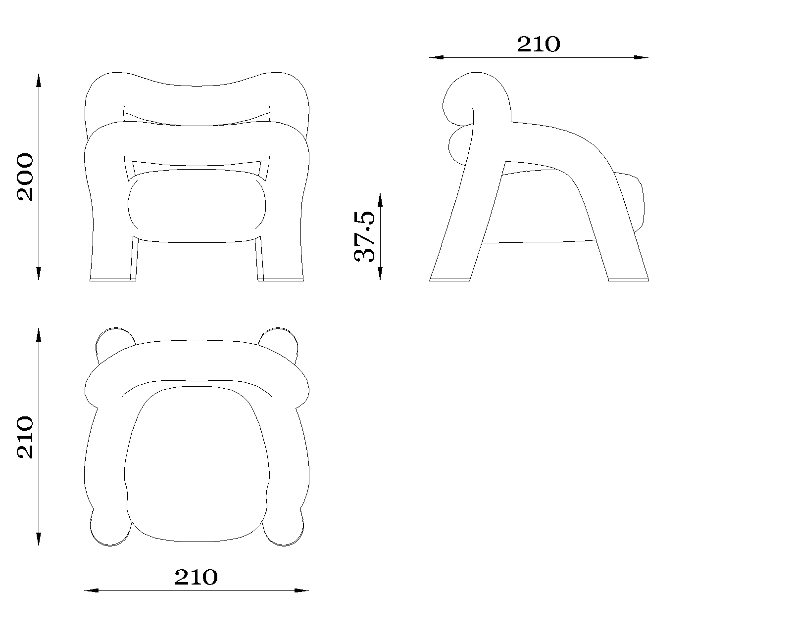 The full upholstery, available in various materials, enhances the continuity of the form and the softness of its curves. The generous padding ensures comfort and support, while the interplay of solids and voids gives the armchair a discreet dynamism born from the balance between sculptural shapes and visual lightness. Every detail is designed to offer a natural, welcoming, and refined seating experience.