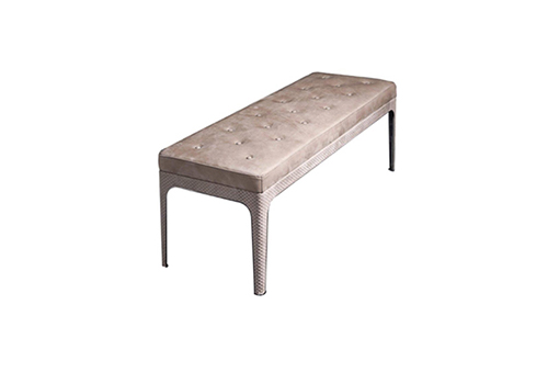 Padded and upholstered headboard with upholstered frame. Metal details. Padded and upholstered bed-frame.