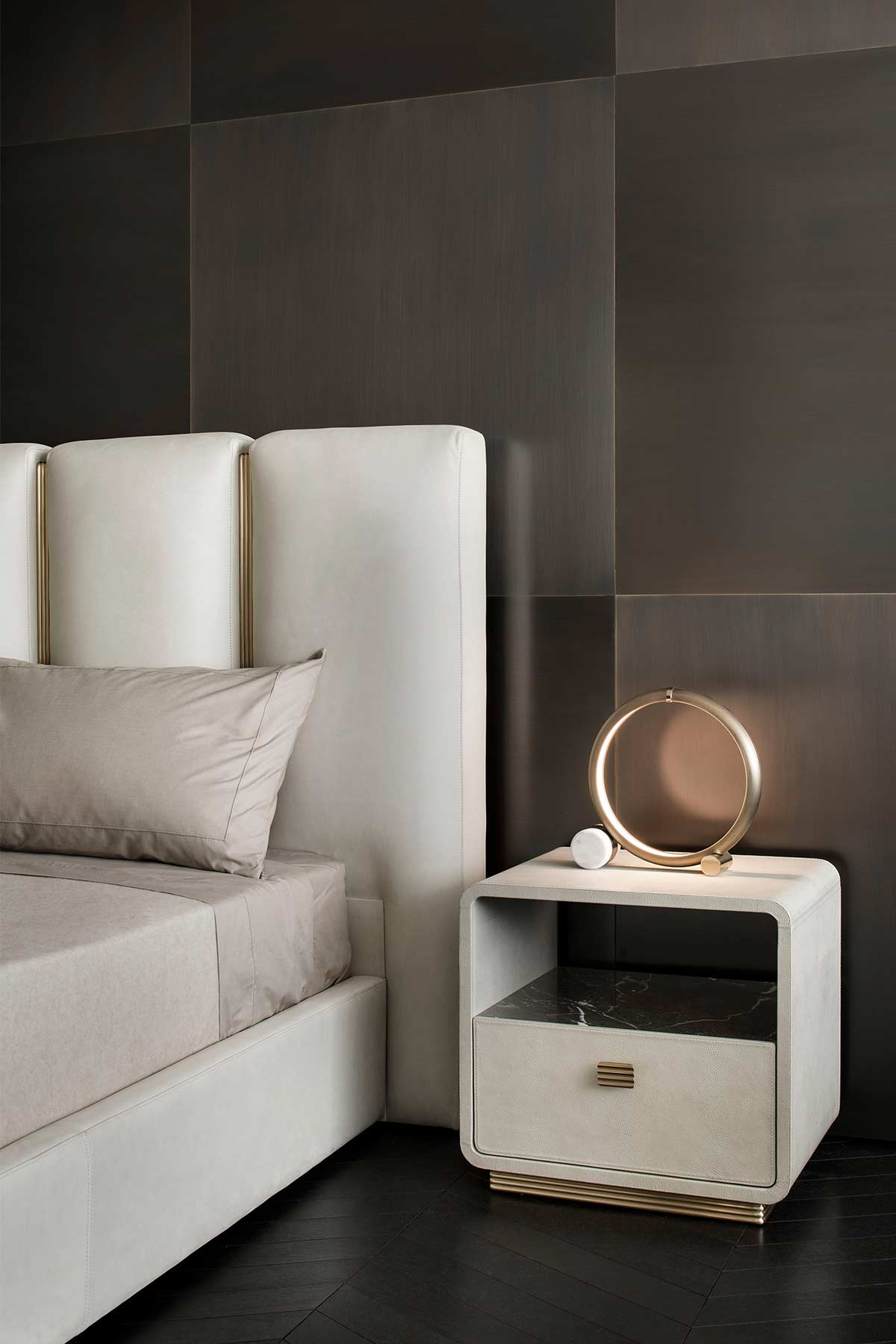 A synthesis of Italian craftsmanship, discreet luxury, and formal research, the Club bed is a Rugiano icon: a scenographic presence that enriches the space with exclusivity and timeless style.