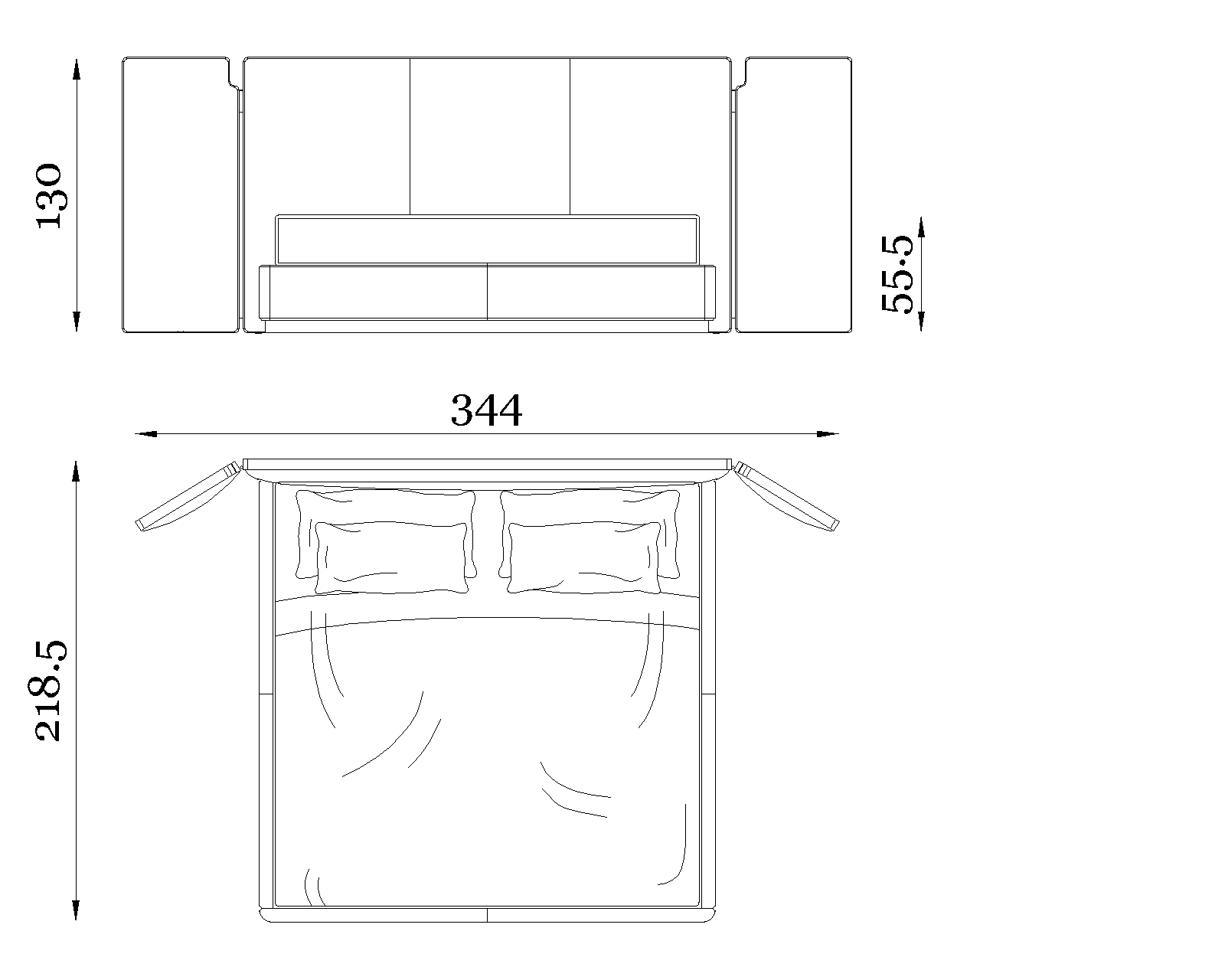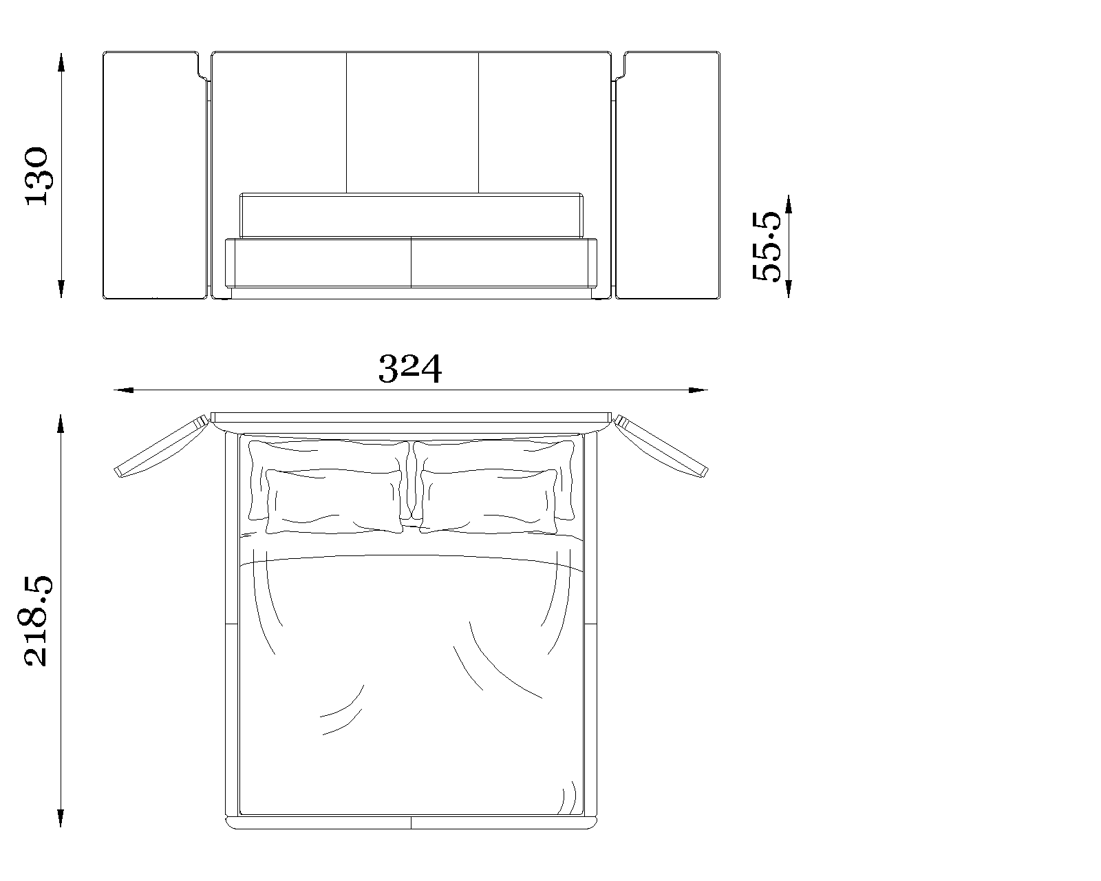 With its bold and sculptural profile, the Falcon Bed transforms the bedroom into a space of formal balance and architectural beauty. The starring element is the large upholstered headboard, enriched by two integrated side wings that extend outward like a protective and embracing gesture, creating a striking visual frame.