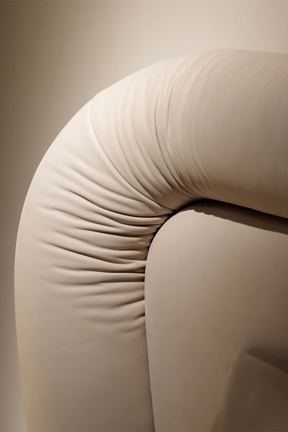 Loom is a bed with soft, voluptuous and sensual shapes. The shape of the headboard like the one of the sommier are made by a tube and are slightly curved creating a surface pleasant to the touch that convey a desire for warmth and comfort.