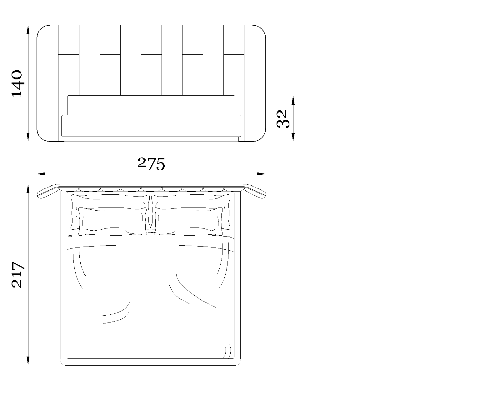 Victoria interprets comfort through soft, contemporary forms, defined by an imposing padded headboard marked by a vertical rhythm of refined volumes. The rounded lines and gentle side curvature evoke a sense of embrace and protection, while the low, structured base creates the perfect balance between presence and visual lightness.