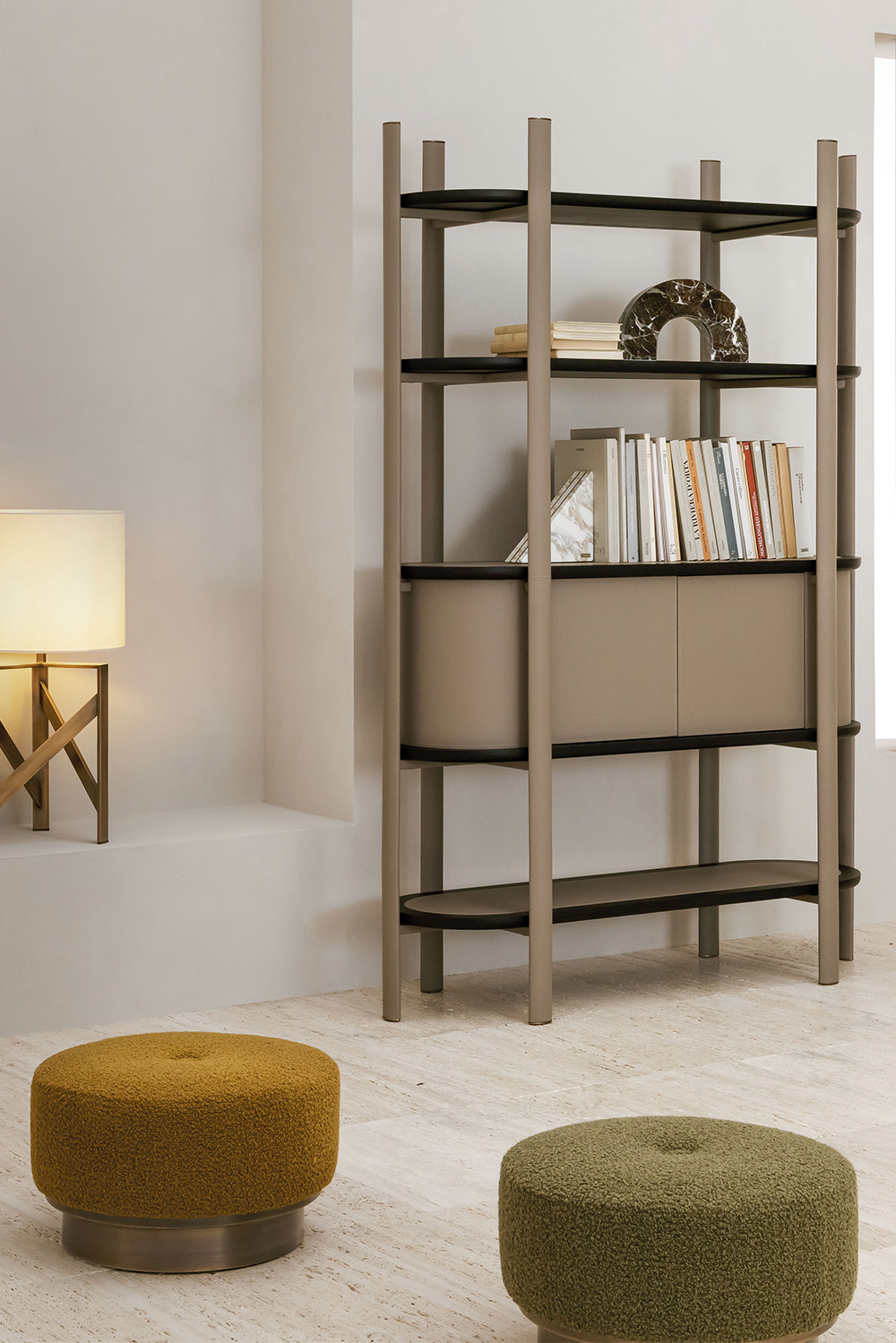 The Coquette collection stands out for its refined aesthetic and meticulous attention to detail, offering a range of furniture pieces — including sideboard and bookcase — designed for contemporary interiors where function and style coexist seamlessly.