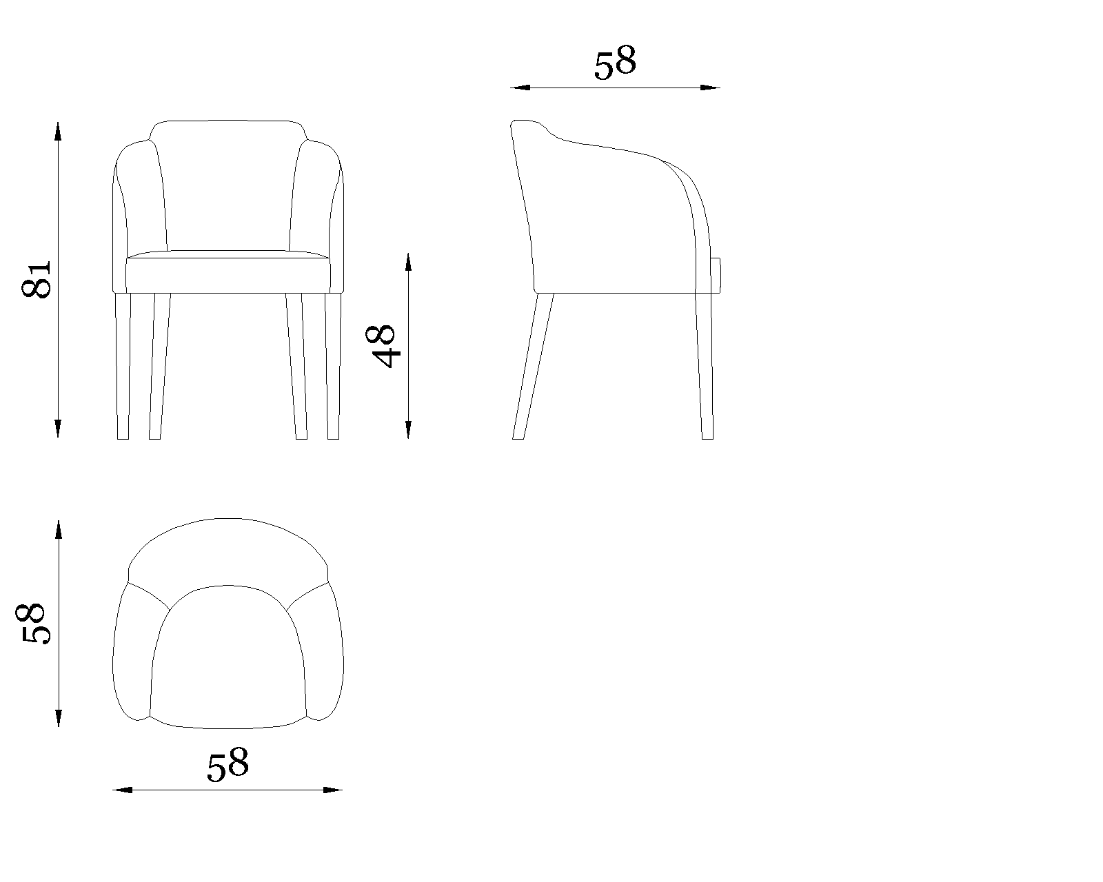 Wholly upholstered small armchair with black chrome or gloss brass legs.