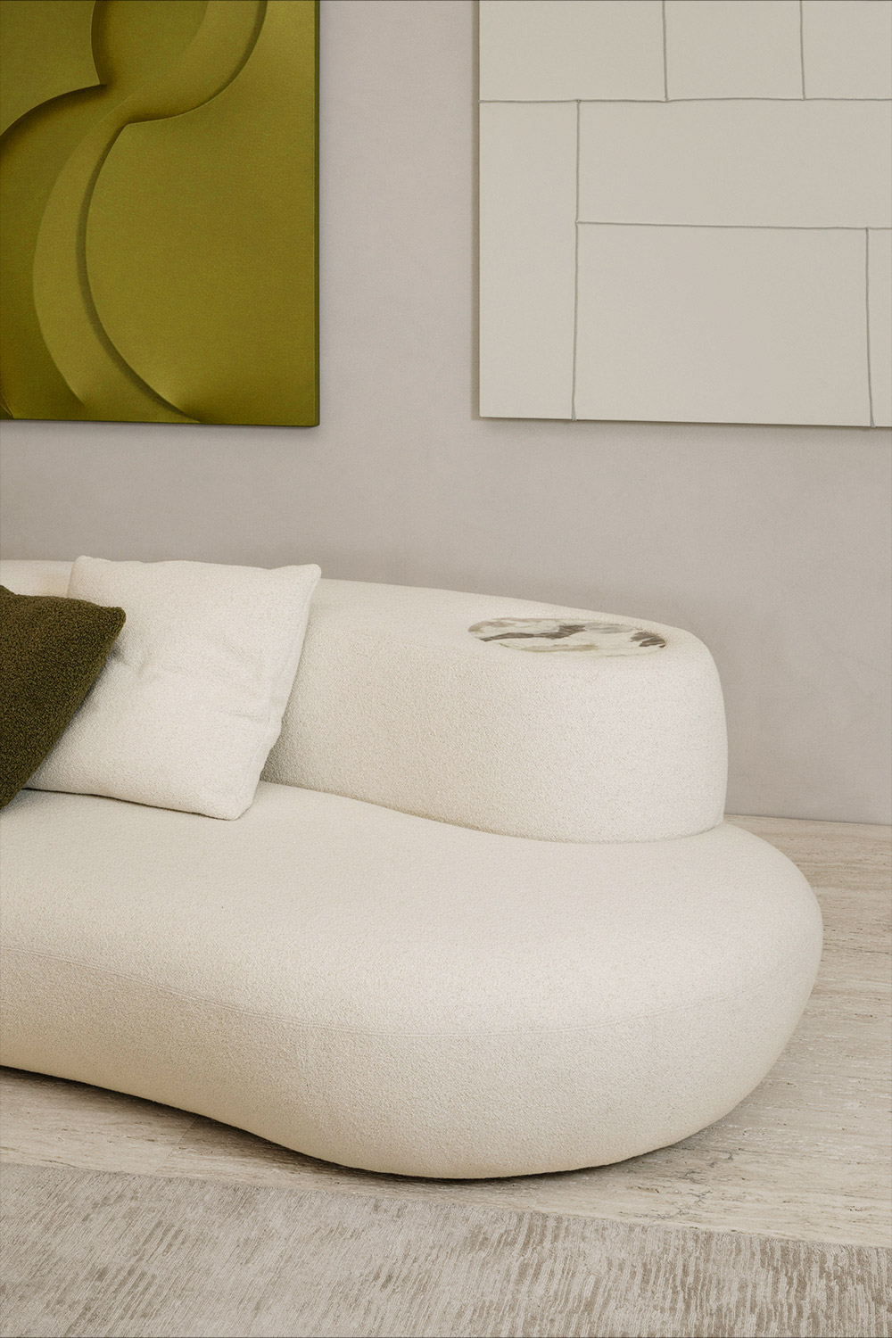 The Rafael chaise longue stands out for its organic and fluid design, where soft forms meet the expressive strength of a monolithic volume. Designed to offer a deeply sophisticated comfort experience, Rafael reinterprets the concept of relaxation with a contemporary language made of seamless, continuous, and inviting lines.