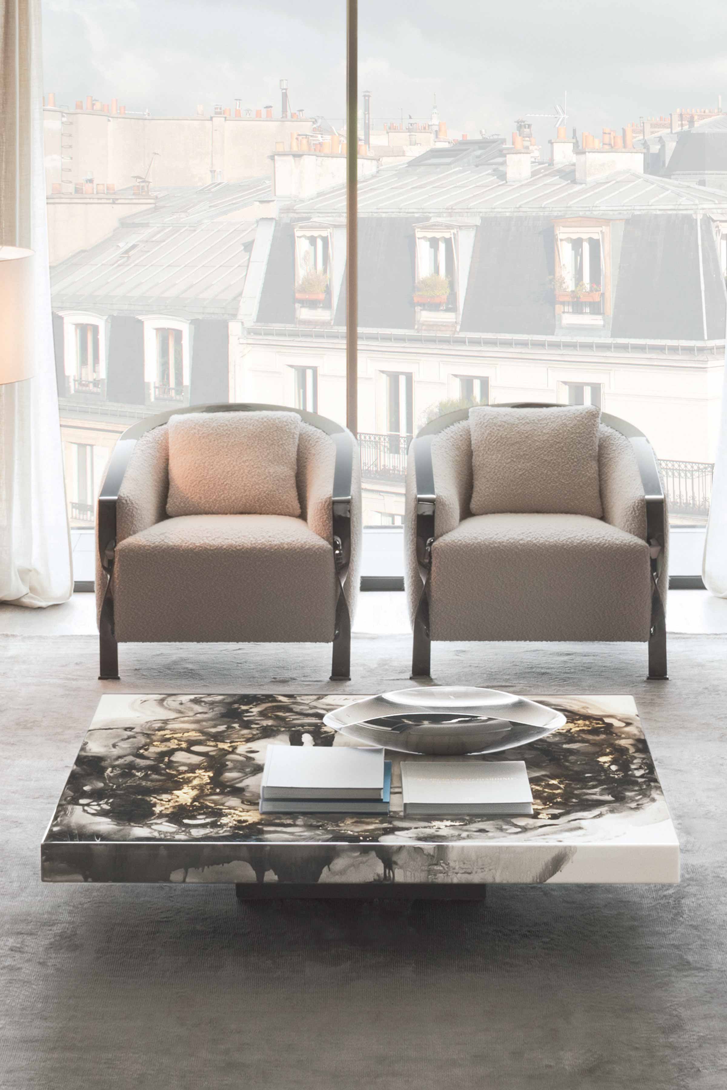 A precious calcite with ethereal, translucent tones. The neutral background, enriched by delicate crystalline shades, gives coffee tables unparalleled visual lightness and brightness.