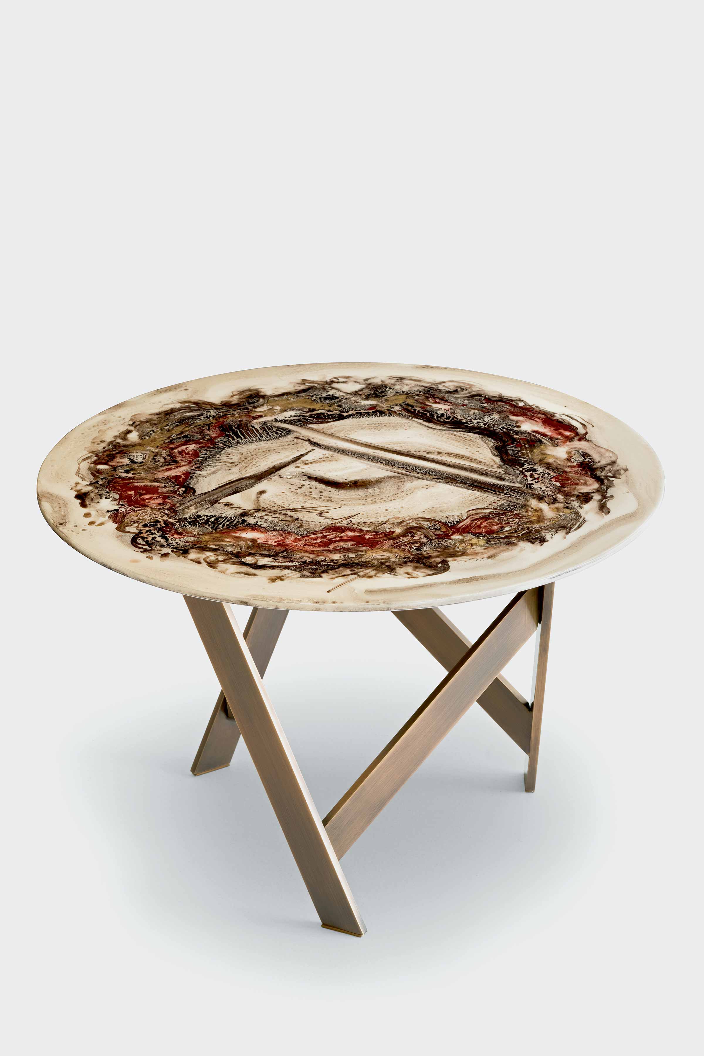 High-end lacquering based on absolute contrast. Deep black serves as a base for gold flows and splashes, creating a finish with a strong graphic and artisanal identity.