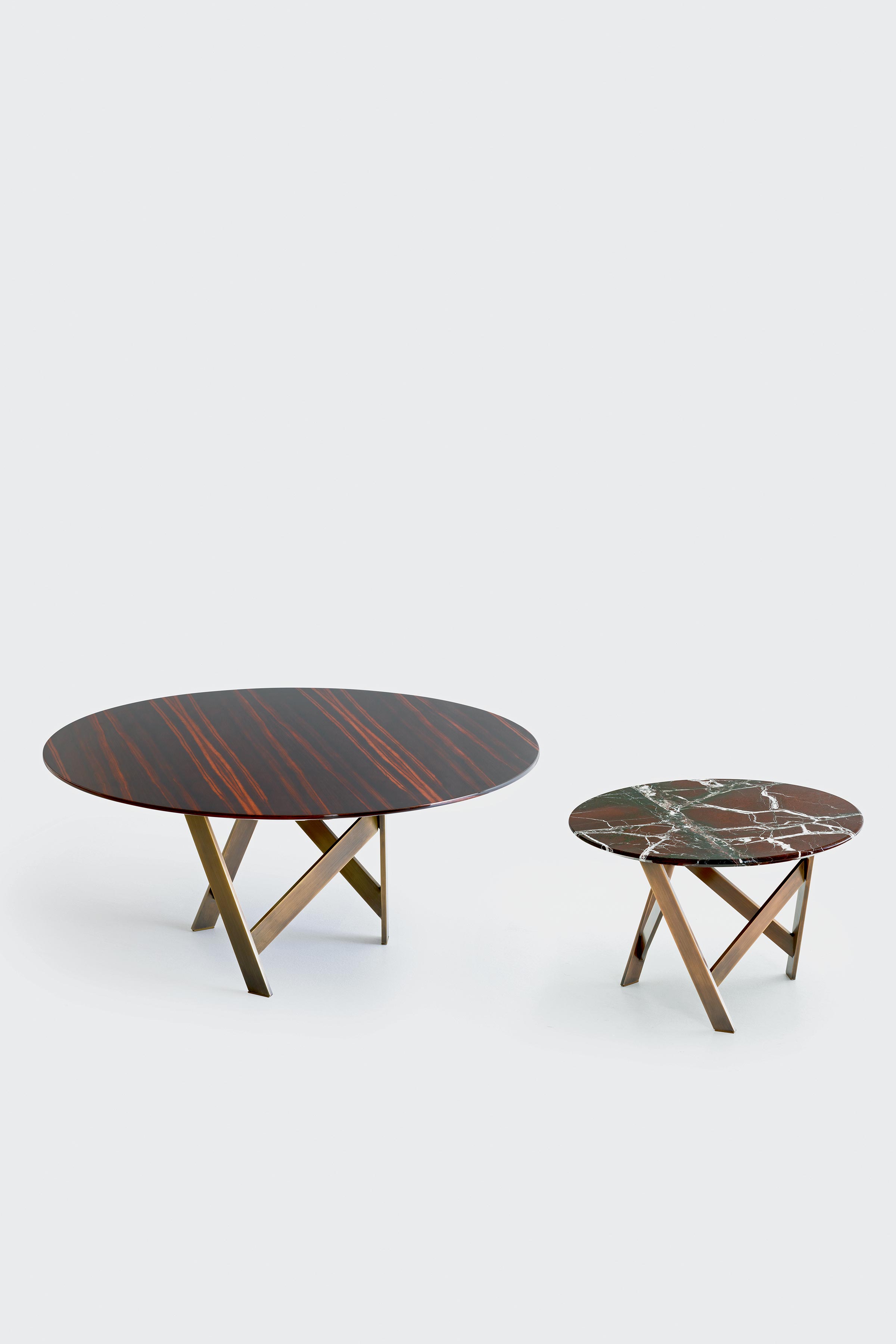 A brecciated marble with a creamy-white background and bold, spectacular veining in shades of purple and burgundy. It transforms the table into an iconic piece of furniture with a strong sculptural component.