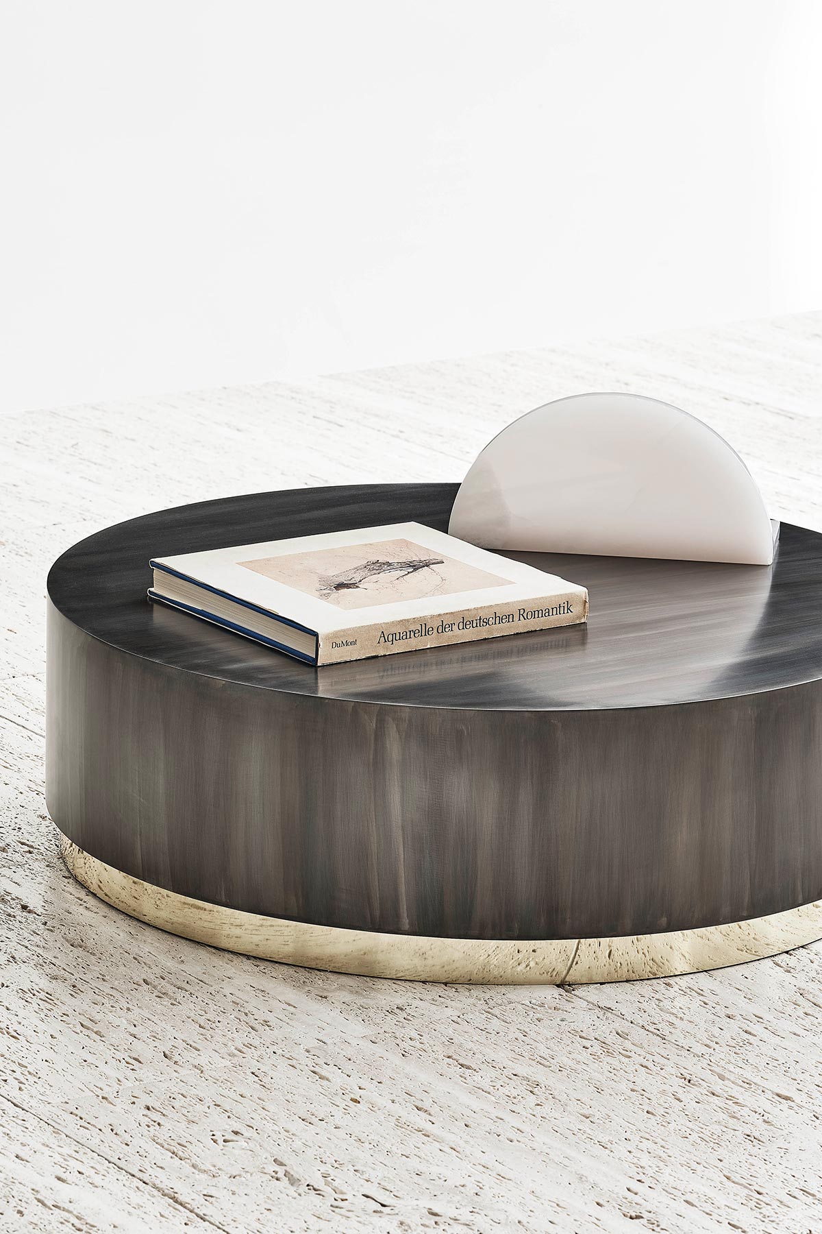 The epitome of Rugiano craftsmanship. The brass surface is manually worked to create an irregular, textured surface that catches the light vibrantly, making each piece unique to the touch and sight.