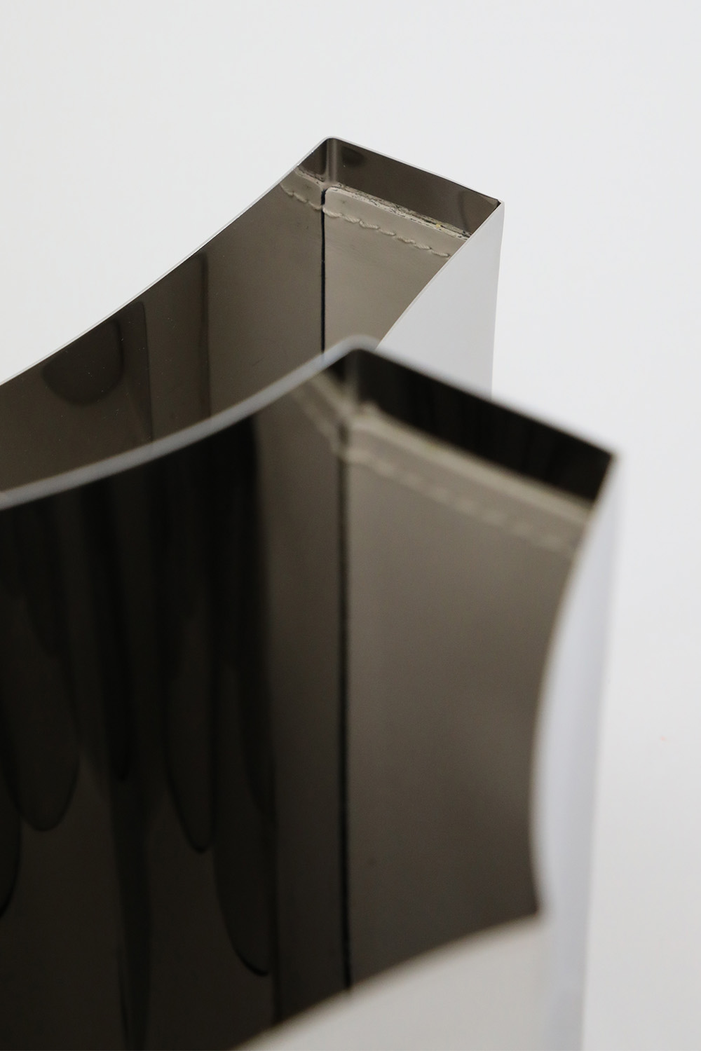 Metal surfaces can be cleaned using a soft dry cloth or a cloth slightly dampened with water. The use of aggressive detergents, abrasive products or solvents should be avoided as they may alter the finish. In the presence of stains or fingerprints, it is recommended to clean gently without rubbing. To preserve the original appearance over time, surfaces should always be dried after cleaning.