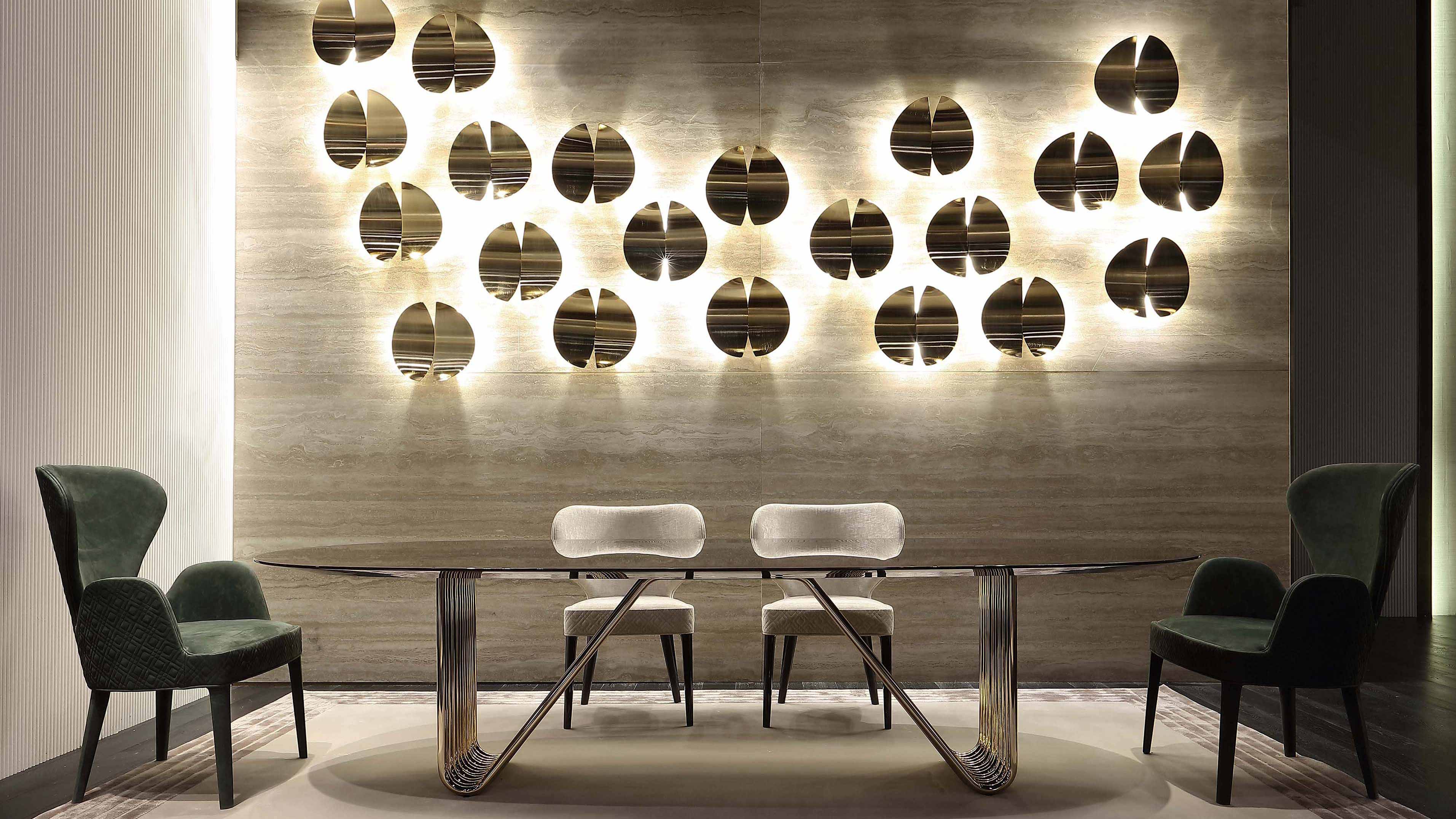 Brass wall lamps available in two different sizes and ideal for wall compositions.
