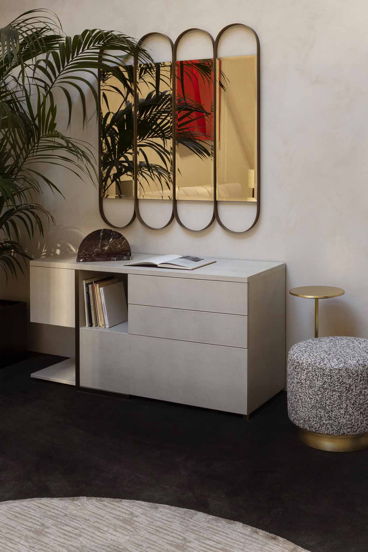 The combination of drawers, closed compartments, and open niches offers versatile solutions for storing and displaying, making the dresser suitable for both bedroom spaces and sophisticated living areas. Mondrian balances functionality and aesthetic refinement, celebrating craftsmanship, material quality, and a coherent design language in which every detail contributes to an elegant and contemporary harmony.
