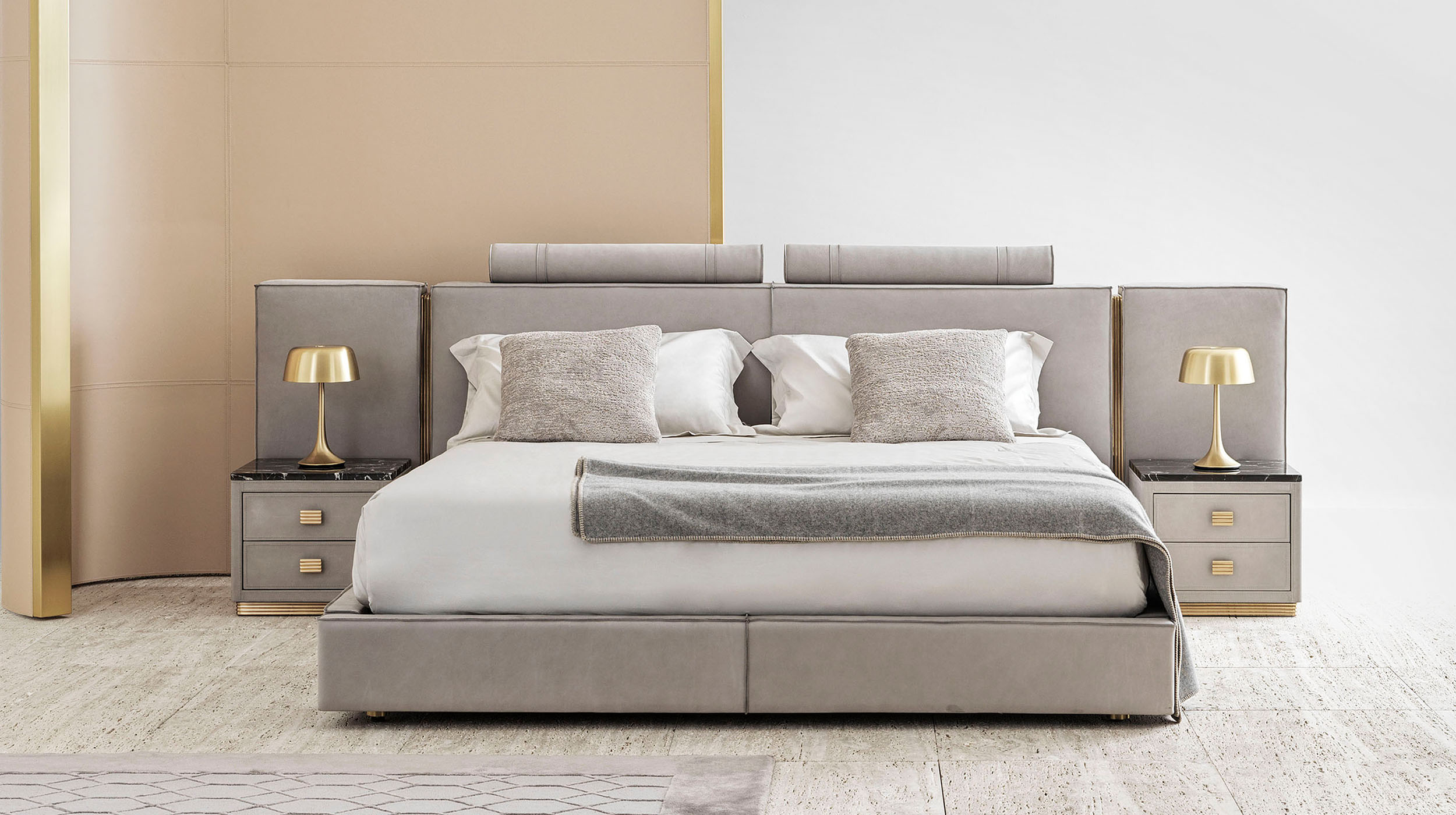 The base with polished brass inserts completes the composition, visually lifting the volume and giving lightness to its presence. Rubik is a nightstand that combines function and style through a refined, timeless aesthetic perfectly aligned with the Rugiano language.