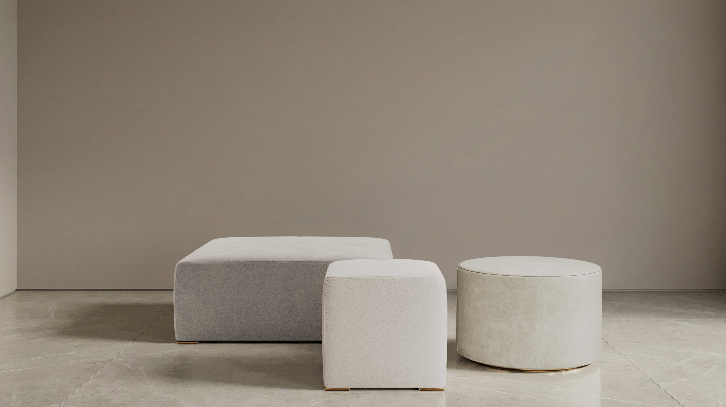 Essential lines and well-balanced proportions define the Form pouf, a furnishing element designed to blend naturally into living spaces, bedrooms, or refined hospitality environments. Its soft shapes, available in different volumes and geometries, express a minimalist and sophisticated idea of comfort, harmoniously integrating into any interior.