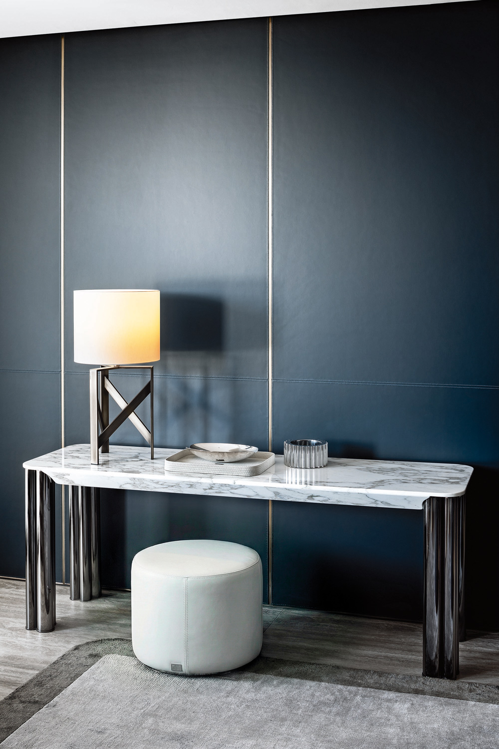 Form is a transversal and functional pouf, ideal as an additional seat or as a small support element next to sofas and armchairs. The variety of materials and finishes makes it customizable and able to interpret different stylistic visions while always maintaining Rugiano’s unmistakable elegance.