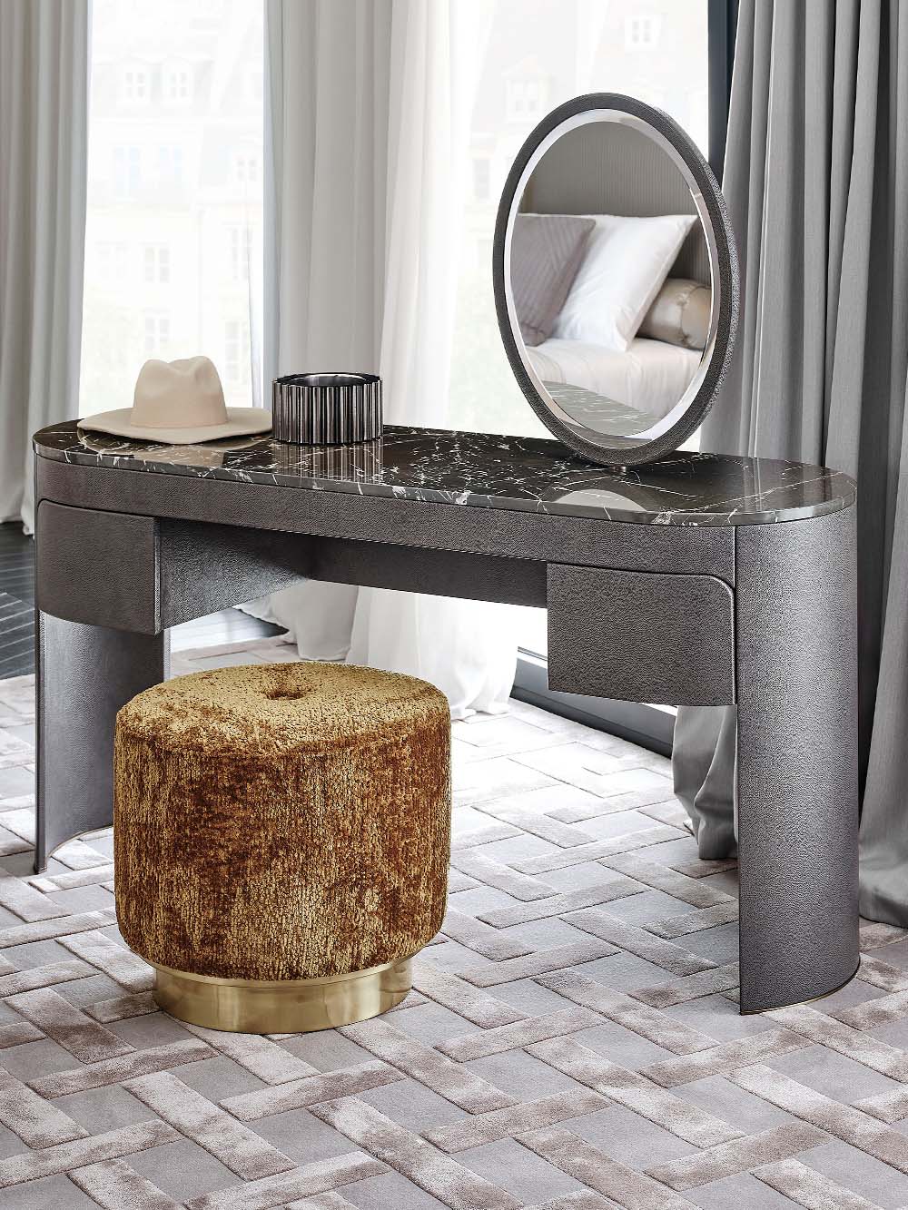 Extreme softness, noble yarns, natural luster. The first chapter of the collection, Velvet & Chenille, is a tribute to the nobility of natural fibers. Within this book, Rugiano’s research celebrates the classic elegance of cotton velvet, enriching it with ultra-luxury offerings in Cashmere and Alpaca—ideal for those seeking a sensation of absolute comfort and enveloping warmth. The chenilles, crafted from natural cotton and viscose yarns, offer shimmering reflections and a soft hand, while ensuring ideal durability for sophisticated daily use. A selection designed for environments that make the preciousness of materials their distinctive hallmark.