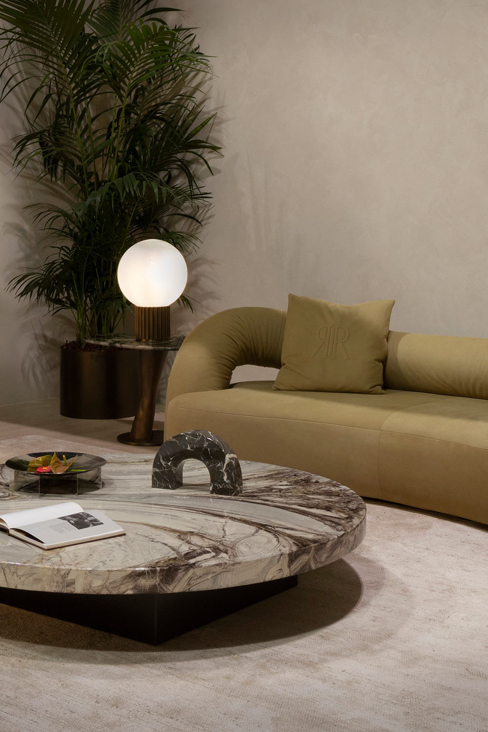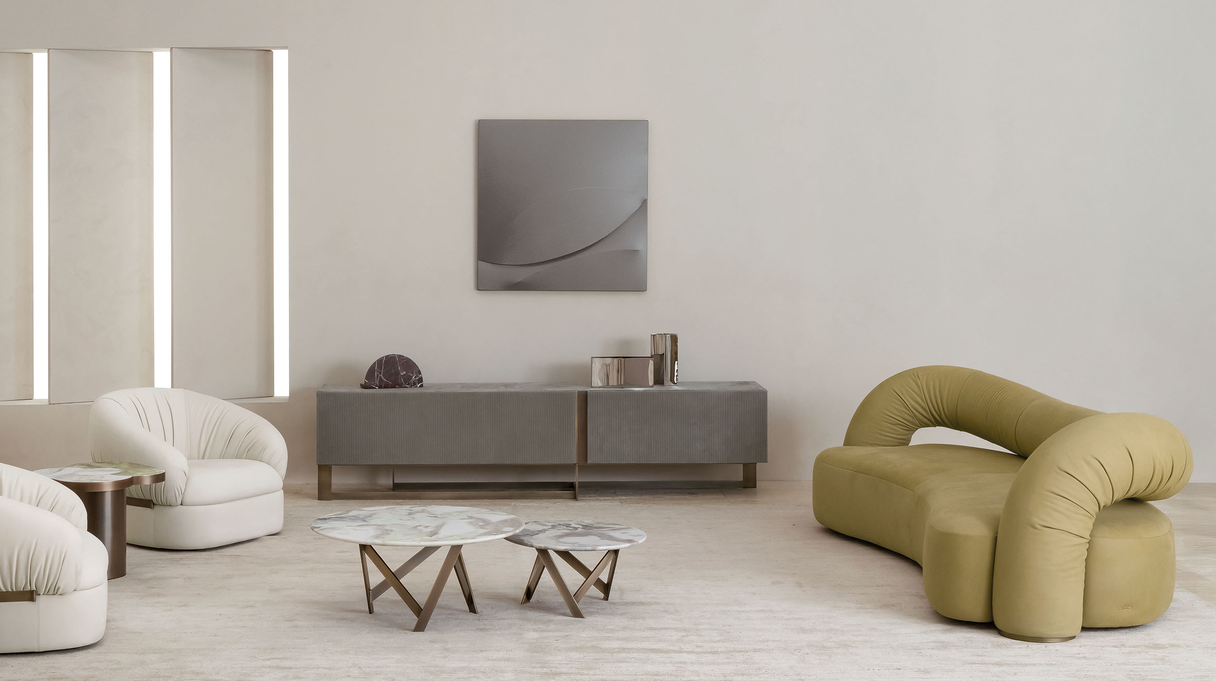 Sculptural and enveloping design, a monumental expression of elegance and comfort.
