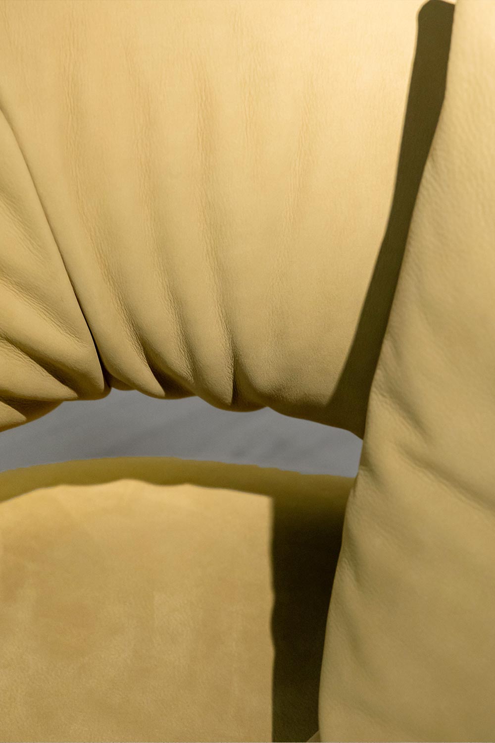 Aesthetically bold yet essential, Abbraccio stands out for its strong visual impact and formal purity, which enhances its sculptural presence. The upholstery—available in tactile fabrics, fine leathers, or natural velvets—adds a refined sensory dimension, while the tailored stitching highlights its artisanal soul. The interplay between full volumes and curved surfaces creates a visual and tactile harmony that defines the piece’s character.