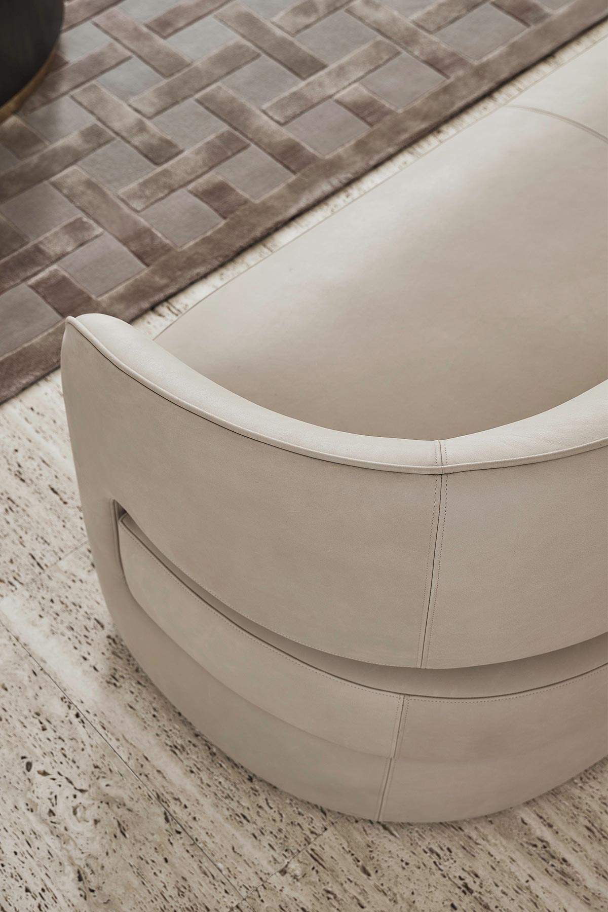 Three-dimensionality, craftsmanship, formal rigor. The Texture & Strutturati volume explores the architectural dimension of fabric. This book brings together a wide range of refined weaves, characterized by the use of heavy yarns that create decorative patterns with a strong visual impact. The weave becomes the protagonist: every warp is designed to enhance the structure of Rugiano furniture, adding depth and character to the surfaces. These are "living" fabrics, capable of interacting with light and defining space through a play of thickness and discreet yet bold geometric designs, perfect for premier residential projects.