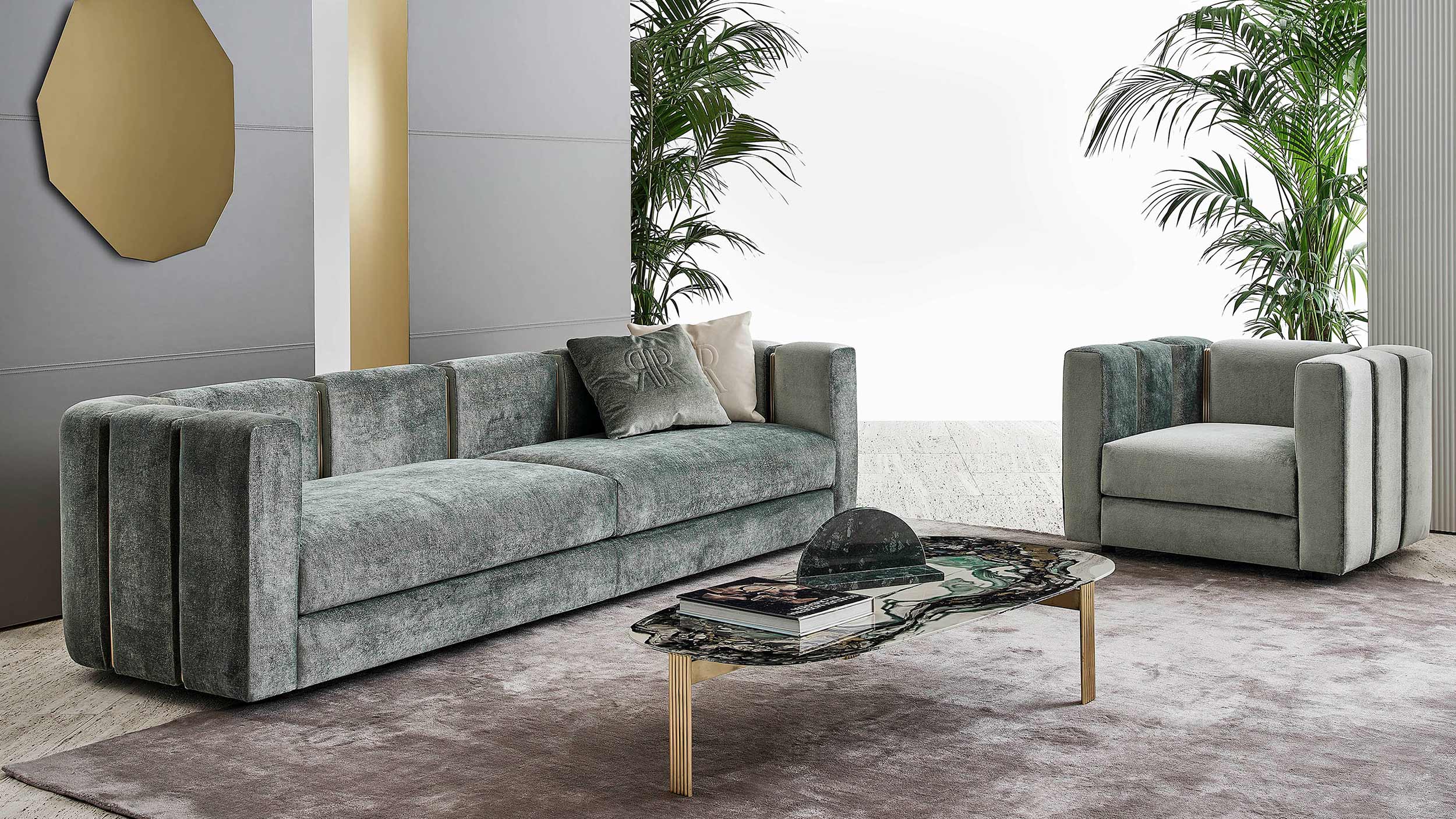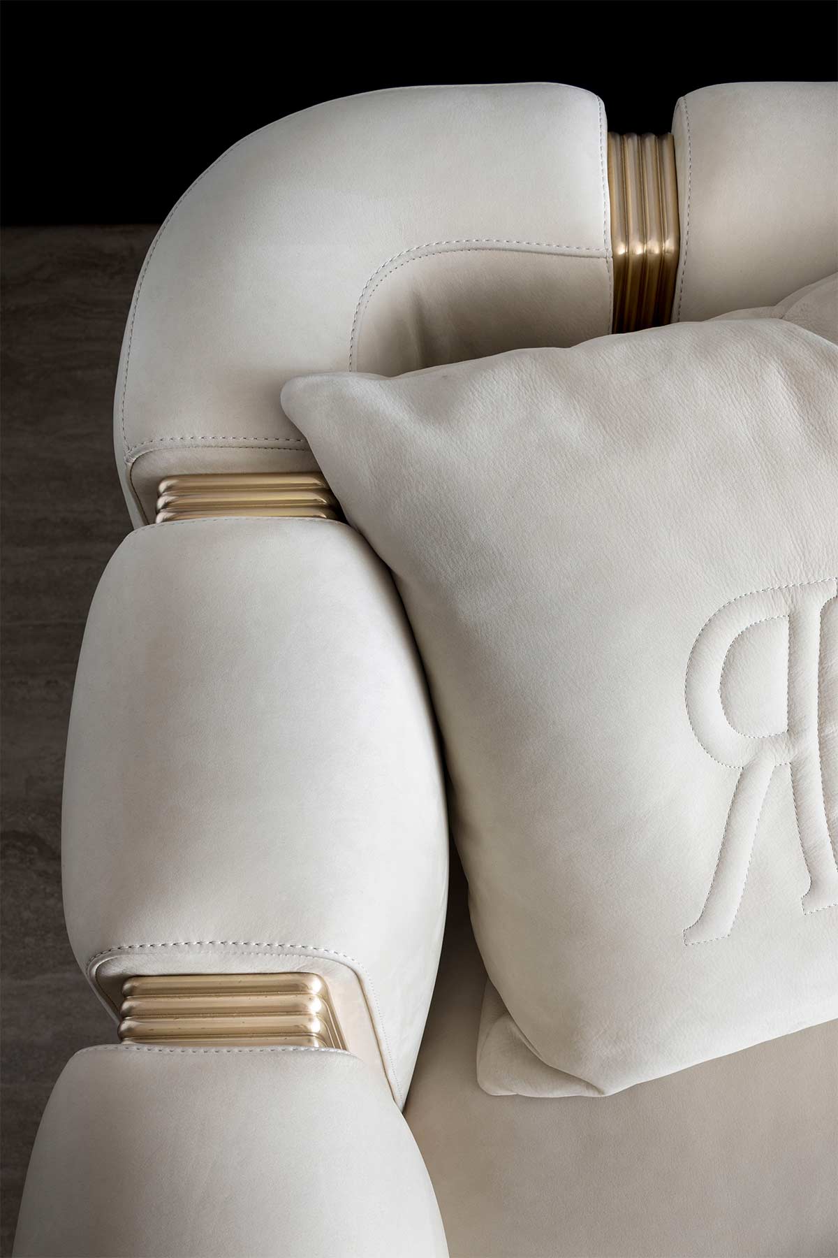 A range of upholstered furniture characterised by brushed brass and bronze drawn tubes that, combined with the leather, create a stylish pattern.