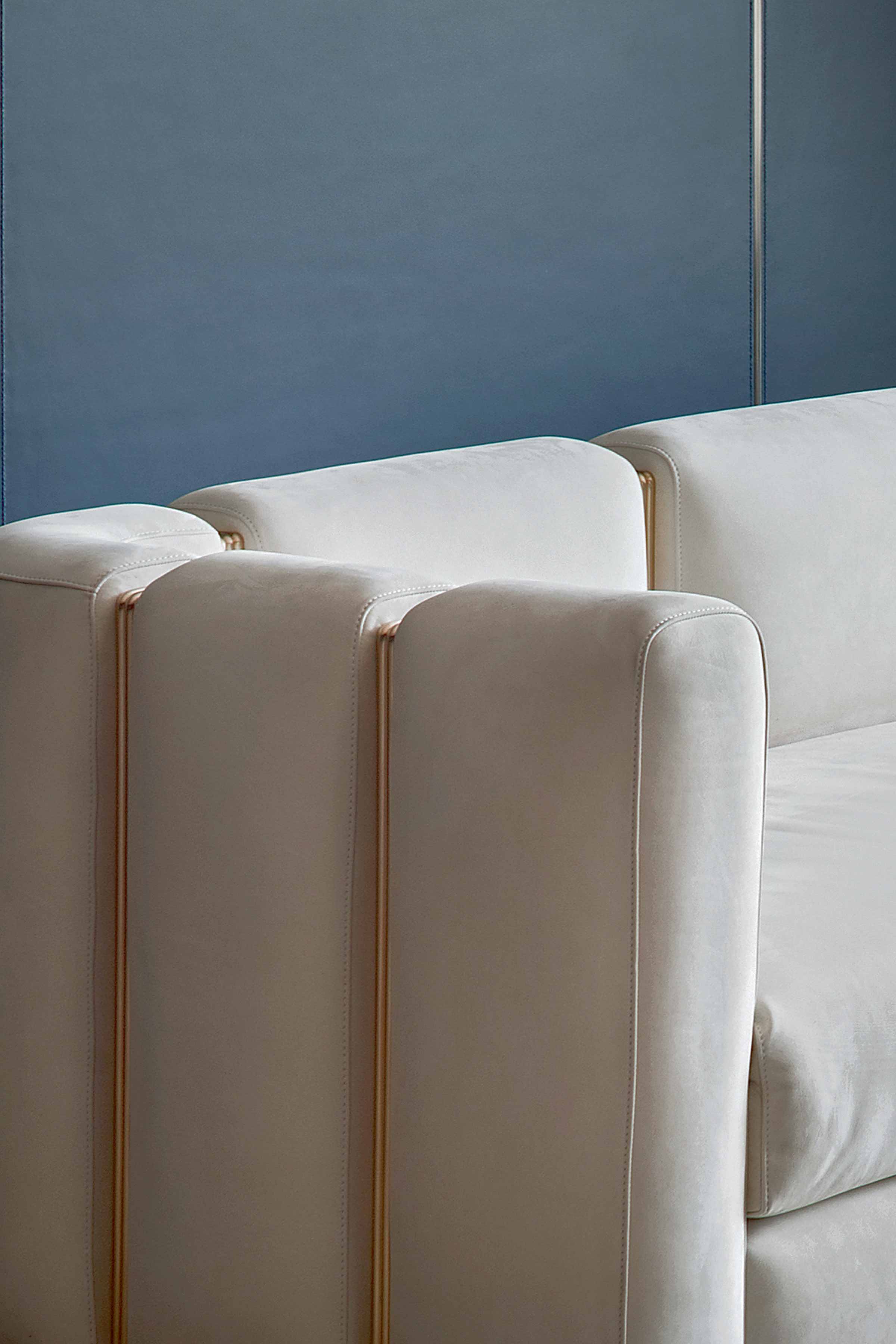 Three-dimensionality, craftsmanship, formal rigor. The Texture & Strutturati volume explores the architectural dimension of fabric. This book brings together a wide range of refined weaves, characterized by the use of heavy yarns that create decorative patterns with a strong visual impact. The weave becomes the protagonist: every warp is designed to enhance the structure of Rugiano furniture, adding depth and character to the surfaces. These are "living" fabrics, capable of interacting with light and defining space through a play of thickness and discreet yet bold geometric designs, perfect for premier residential projects.