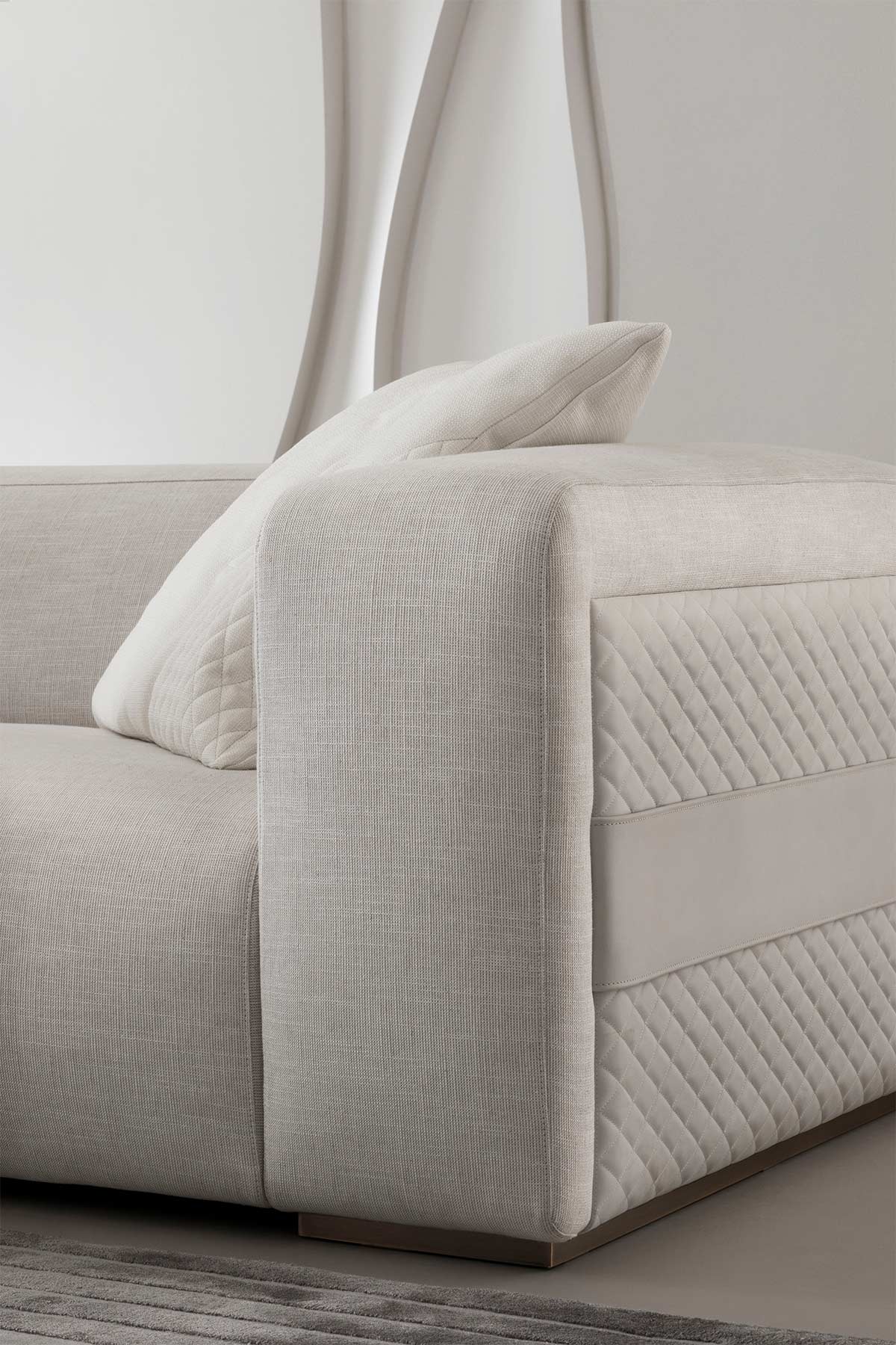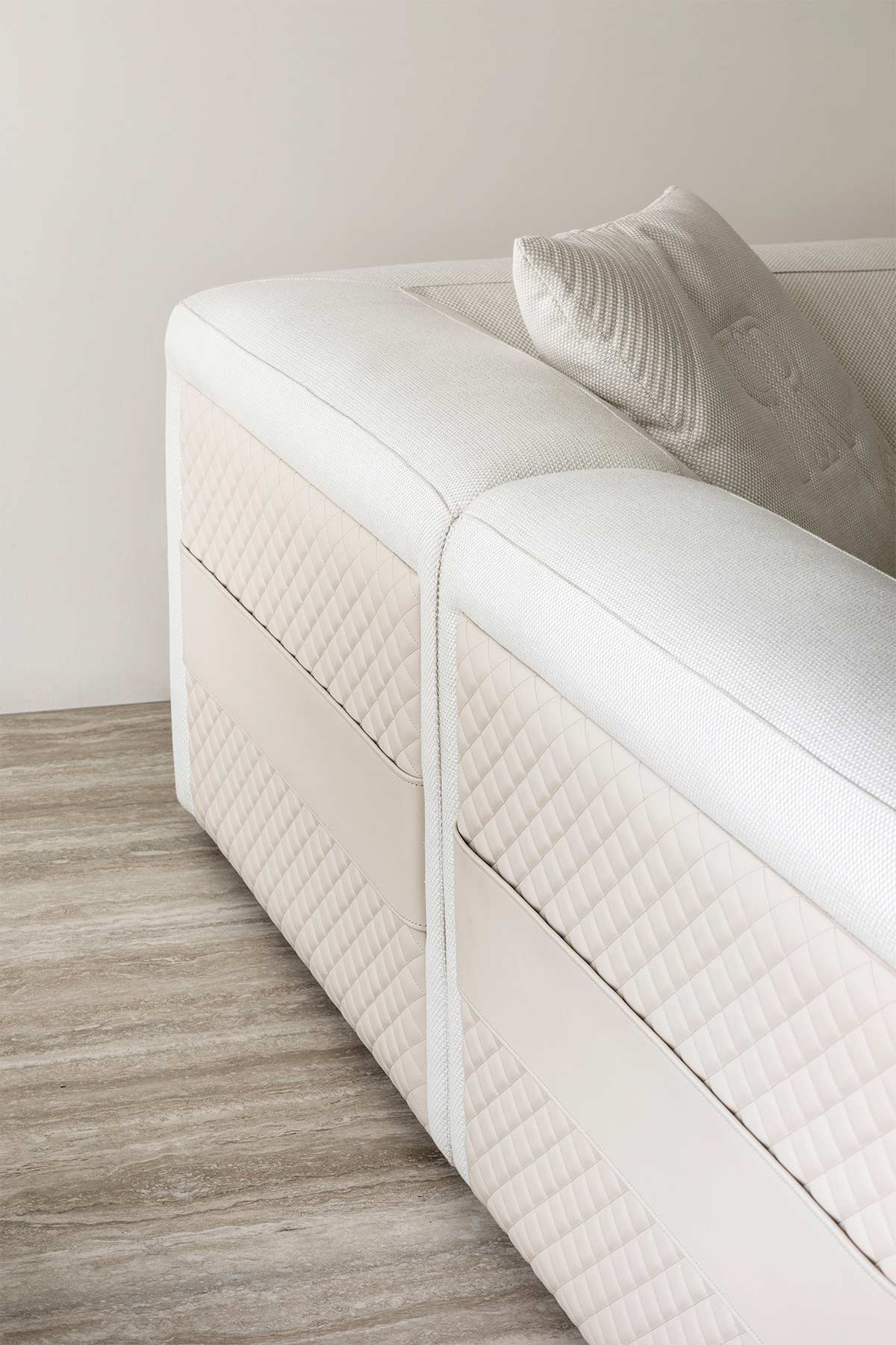 Three-dimensionality, craftsmanship, formal rigor. The Texture & Strutturati volume explores the architectural dimension of fabric. This book brings together a wide range of refined weaves, characterized by the use of heavy yarns that create decorative patterns with a strong visual impact. The weave becomes the protagonist: every warp is designed to enhance the structure of Rugiano furniture, adding depth and character to the surfaces. These are "living" fabrics, capable of interacting with light and defining space through a play of thickness and discreet yet bold geometric designs, perfect for premier residential projects.
