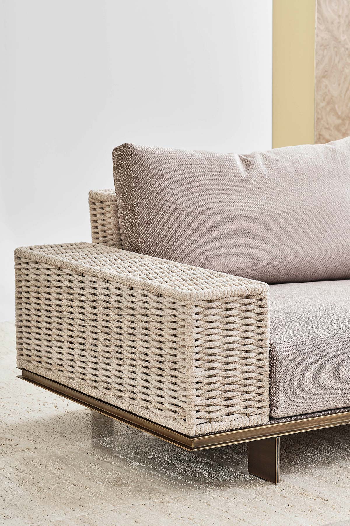 Three-dimensionality, craftsmanship, formal rigor. The Texture & Strutturati volume explores the architectural dimension of fabric. This book brings together a wide range of refined weaves, characterized by the use of heavy yarns that create decorative patterns with a strong visual impact. The weave becomes the protagonist: every warp is designed to enhance the structure of Rugiano furniture, adding depth and character to the surfaces. These are "living" fabrics, capable of interacting with light and defining space through a play of thickness and discreet yet bold geometric designs, perfect for premier residential projects.