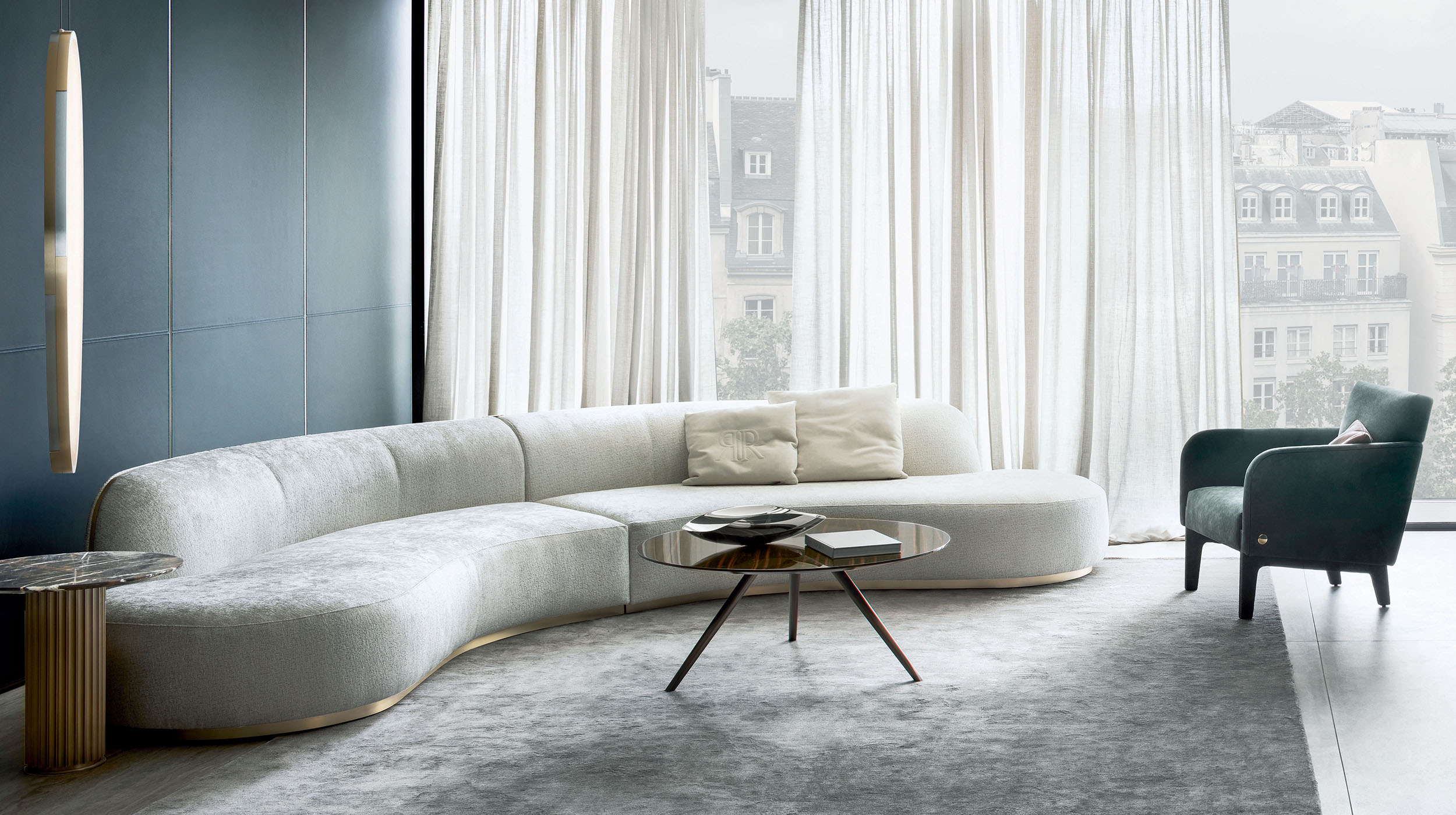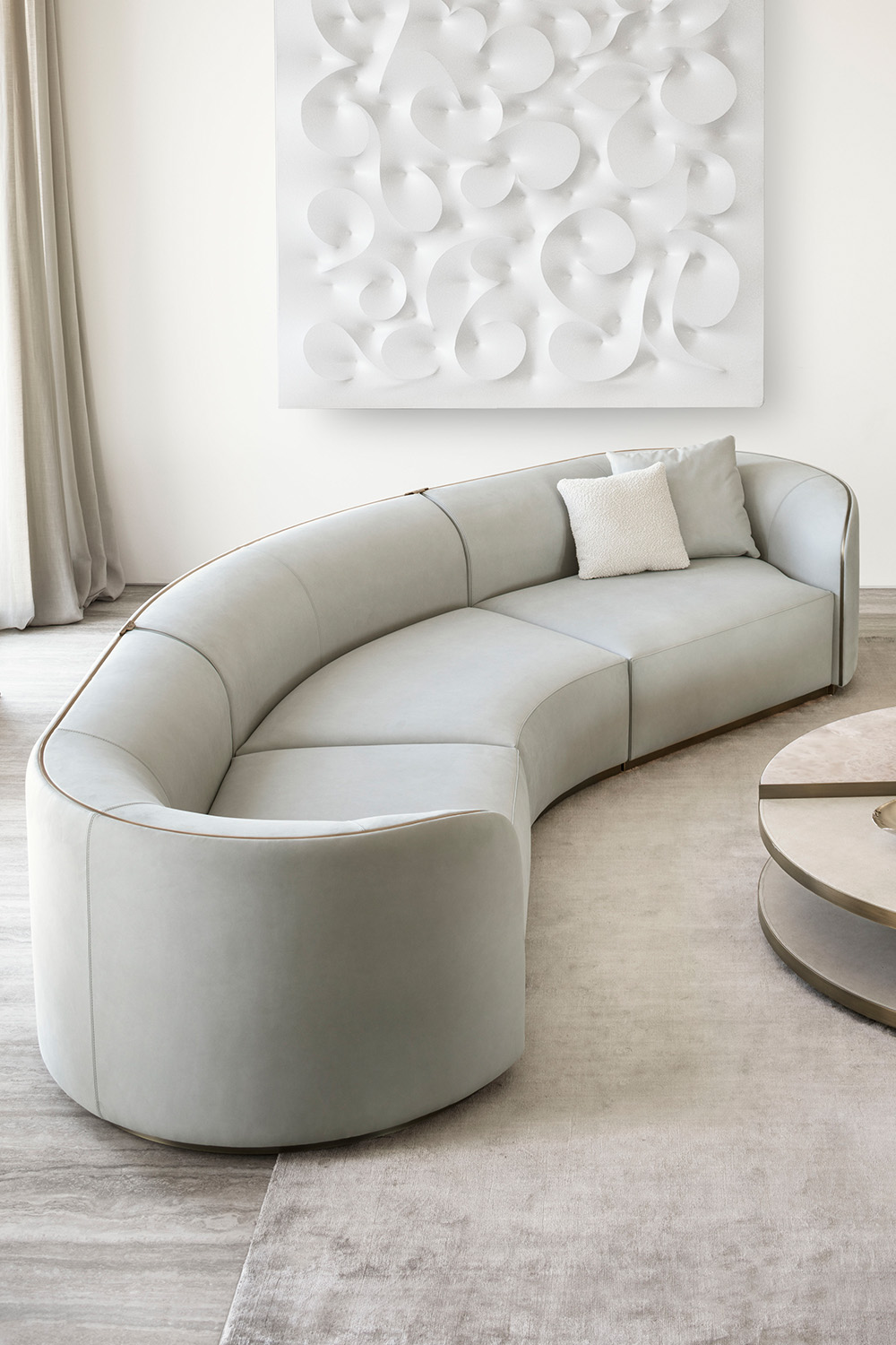 Range of modular sofas. Curved end-modules and corner-modules help create unique and sinuous compositions.