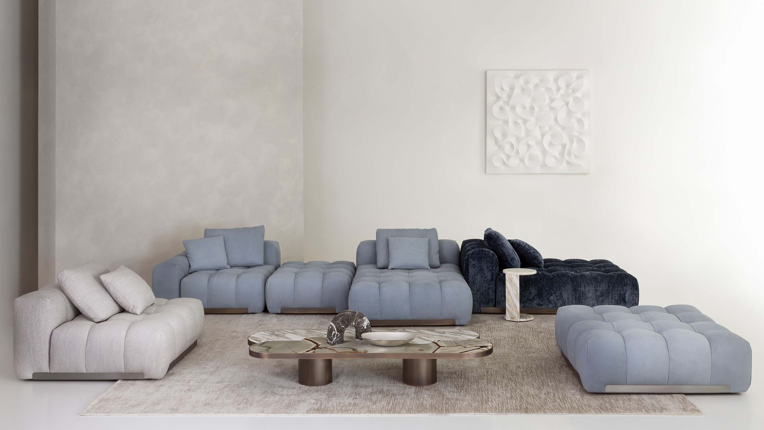 Thanks to the modularity of its components—central units, corners, end pieces, and chaise longues—Yacht adapts effortlessly to any space, offering dynamic and customized solutions for living areas that embody comfort, elegance, and personality. A versatile furnishing proposal, conceived for those who seek a discreet and contemporary sense of luxury.