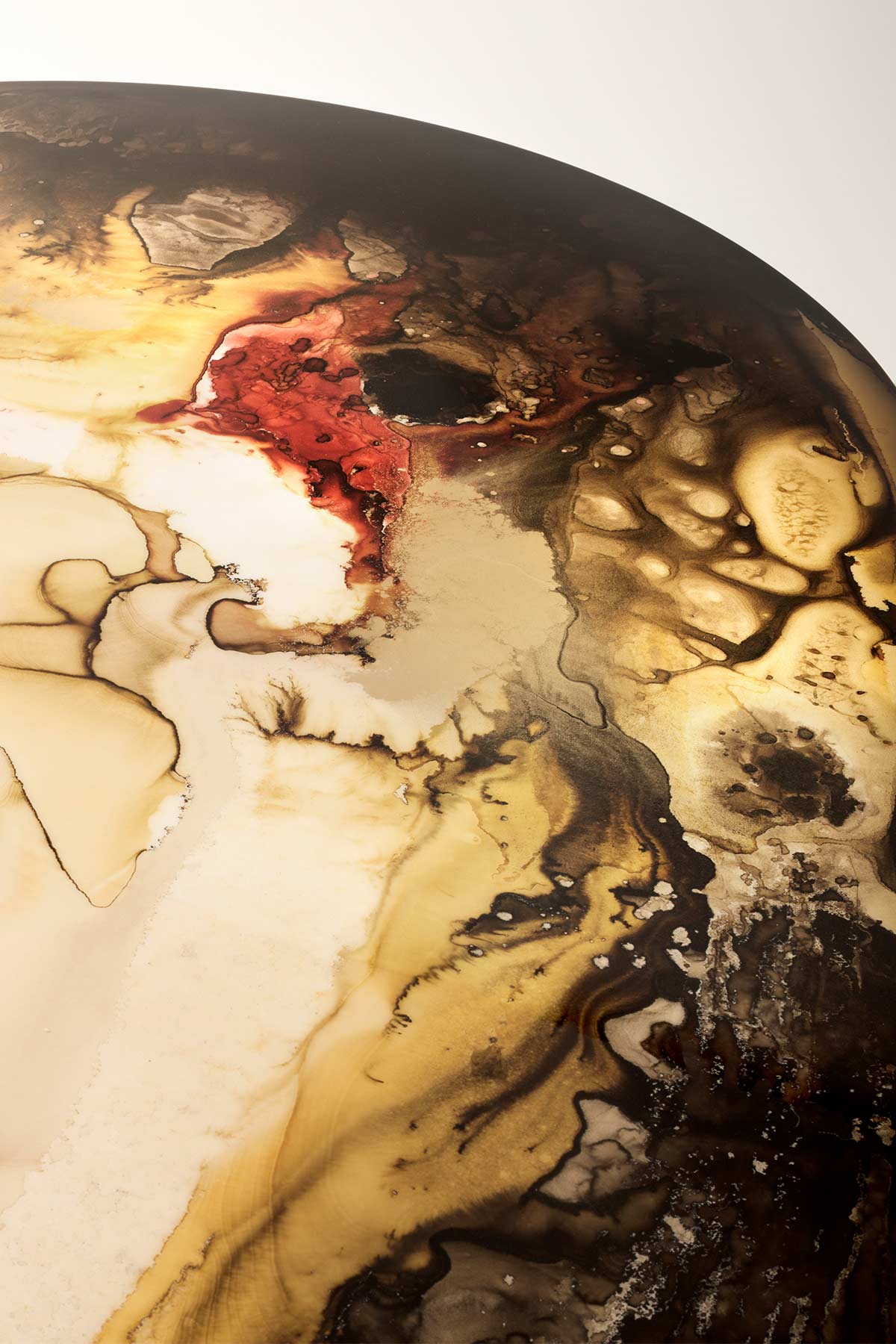 High-end lacquering based on absolute contrast. Deep black serves as a base for gold flows and splashes, creating a finish with a strong graphic and artisanal identity.