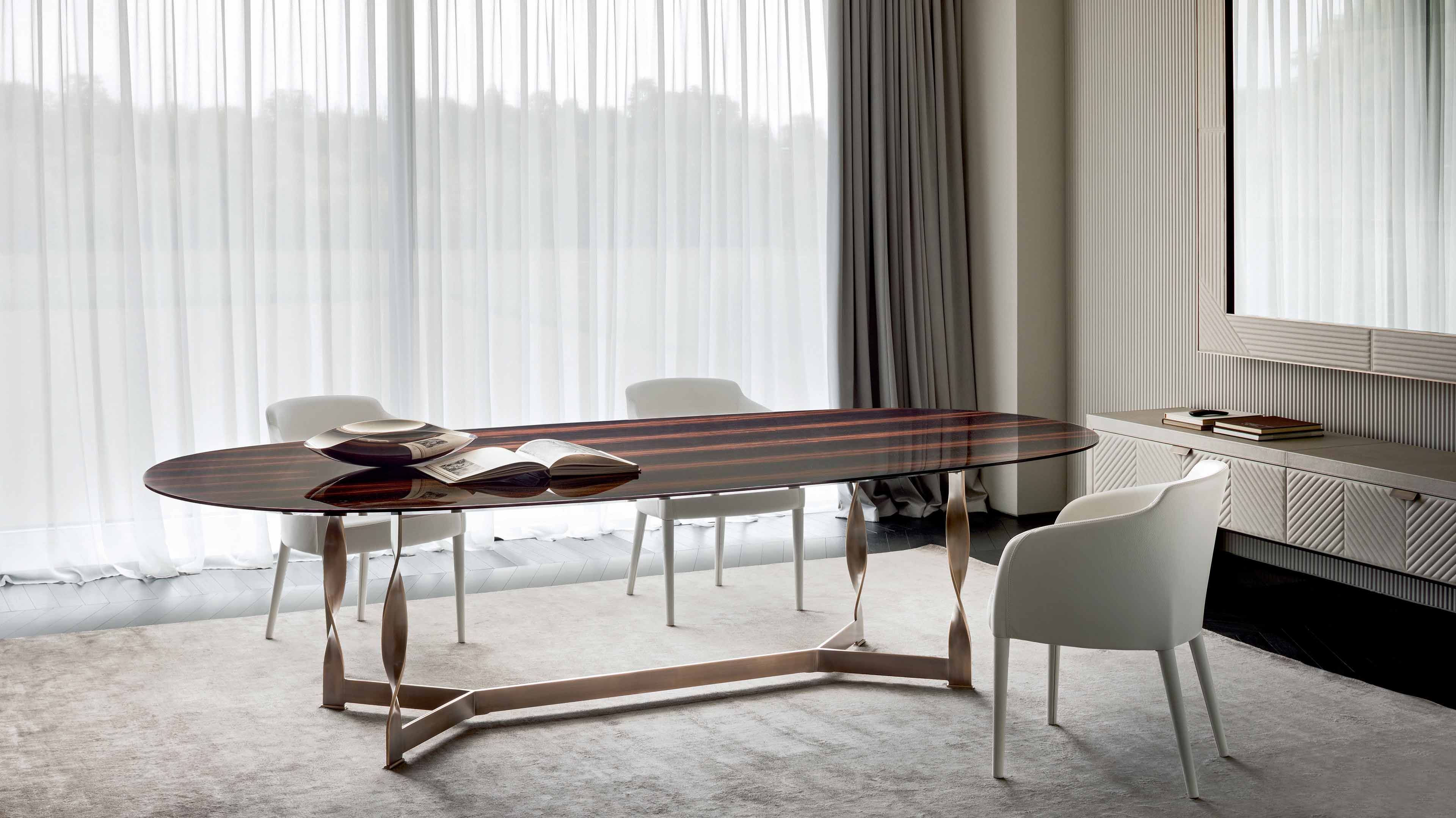 The top is available in a variety of dimensions and can be decorated, made out of wood or upholstered in leather.