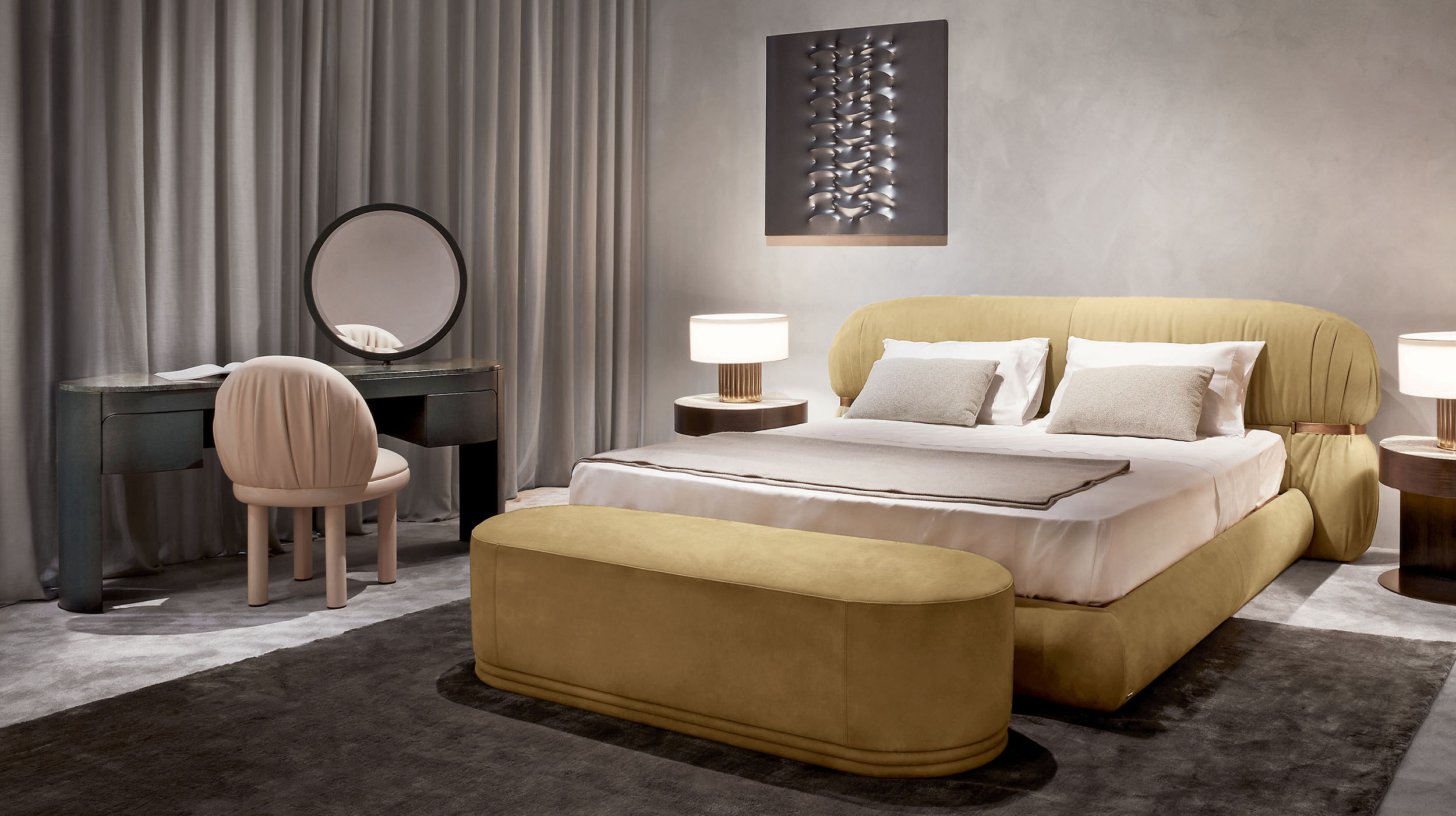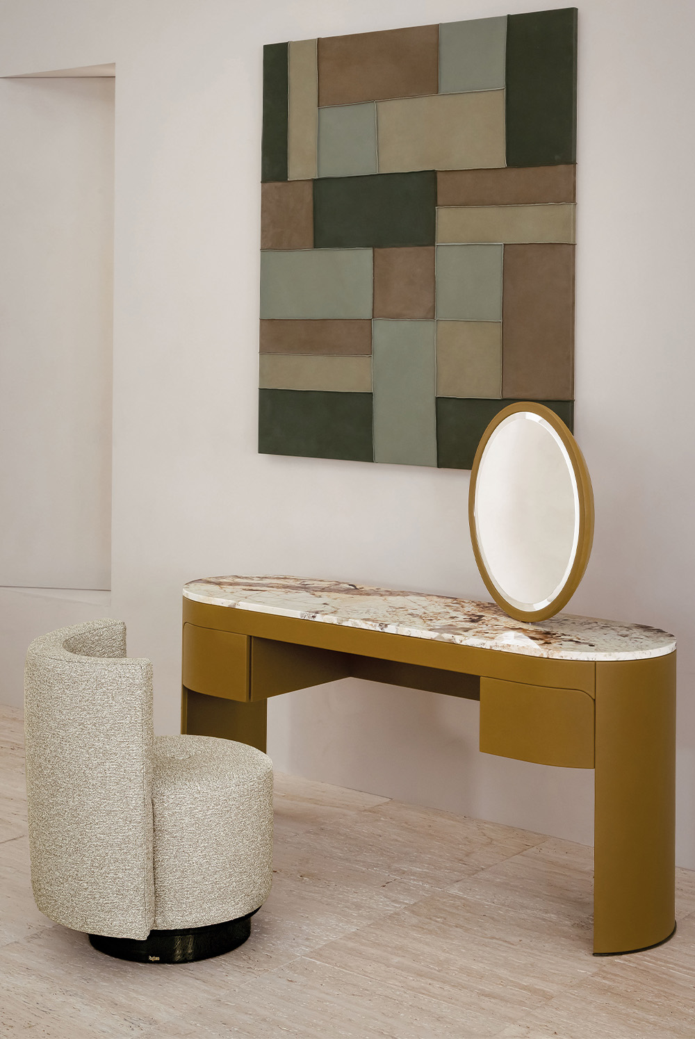 Vogue is a vanity conceived for sophisticated night areas or elegant dressing corners, where every detail contributes to creating a relaxed, tidy, and highly personal atmosphere. A perfect synthesis of Italian craftsmanship, aesthetic research, and functional design, Vogue is a statement piece with bold character and timeless beauty.