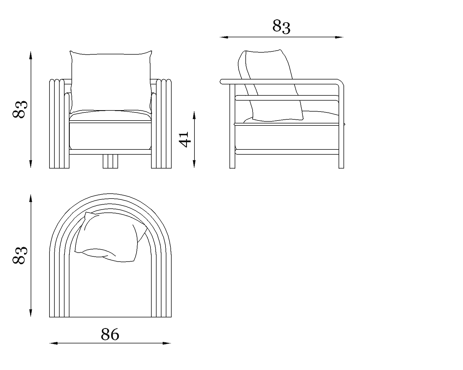 Capri is the armchair that brings Rugiano’s distinctive design language outdoors. Its geometric frame, crafted from precision-curved, powder-coated outdoor aluminum, supports generous volumes and soft padding, creating a visual balance between architectural strength and inviting comfort.