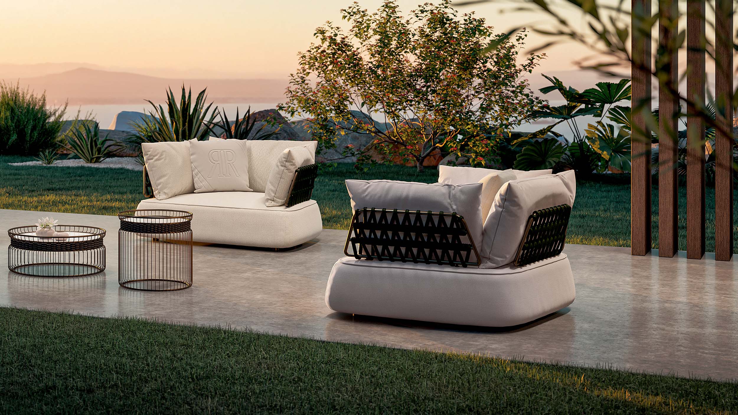 The Soft Ropes collection represents the evolution of the outdoor weaving concept towards maximum comfort. These ropes stand out for their increased diameter and a padded inner core that provides superior softness to the touch. The voluminous craftsmanship simulates the warmth and coziness of indoor fabrics, transforming outdoor sofas and armchairs into havens of pure relaxation.