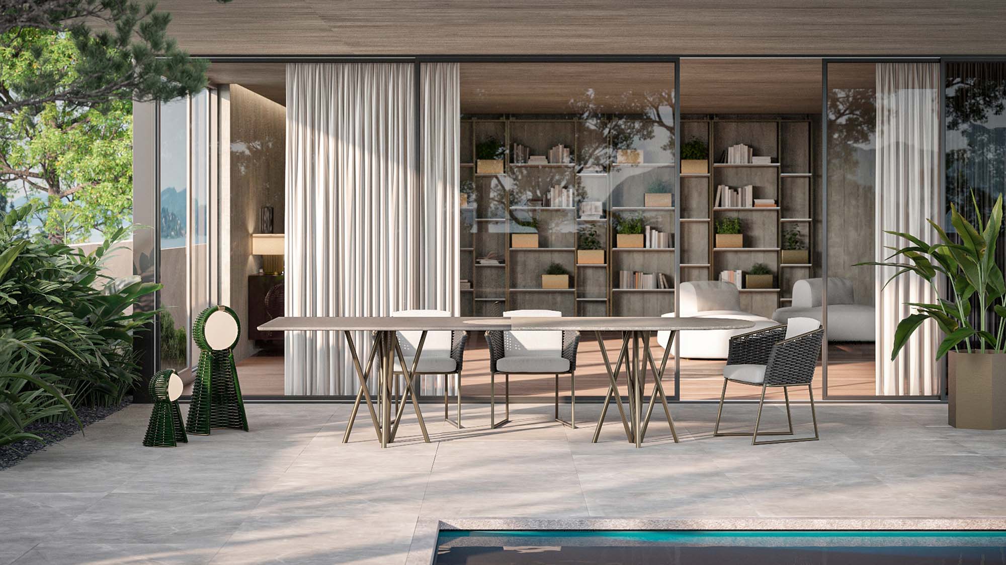 The Rugiano outdoor textile collection brings the sartorial elegance of indoor living to open-air spaces through a selection of excellence. These fabrics stand out for their rich, three-dimensional weaves that offer a soft, natural touch, moving beyond the rigor of traditional technical coverings. Every fiber is engineered to withstand the elements, ensuring a beauty that remains unchanged over time.