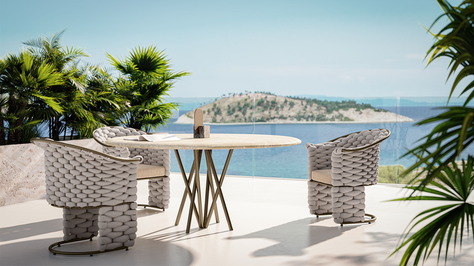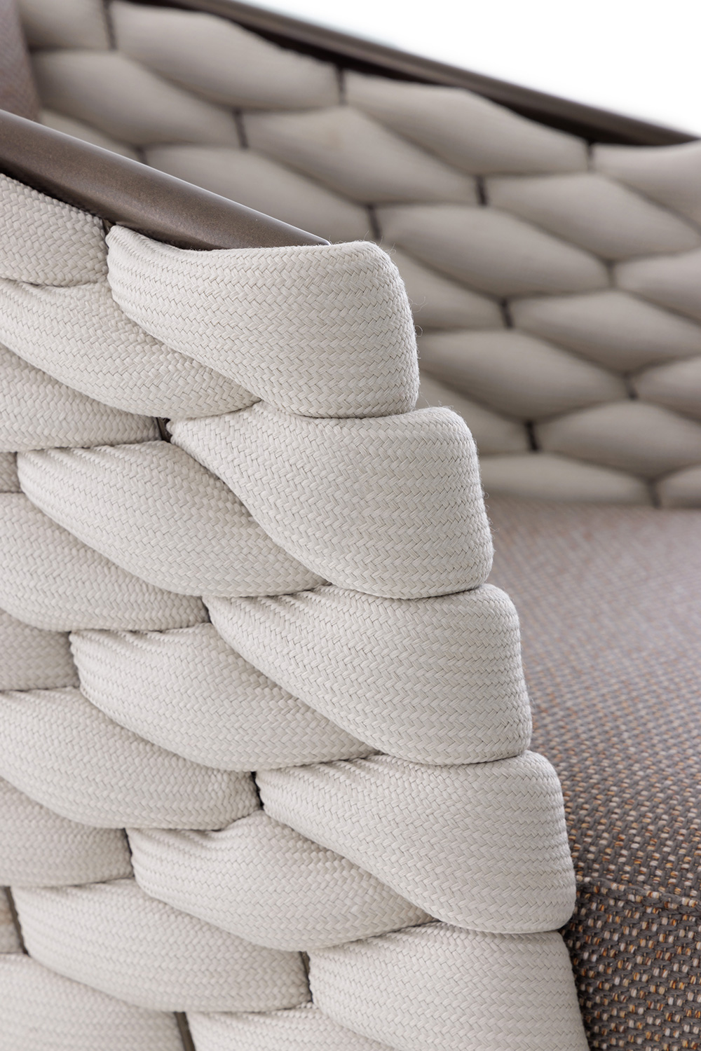 The Soft Ropes collection represents the evolution of the outdoor weaving concept towards maximum comfort. These ropes stand out for their increased diameter and a padded inner core that provides superior softness to the touch. The voluminous craftsmanship simulates the warmth and coziness of indoor fabrics, transforming outdoor sofas and armchairs into havens of pure relaxation.