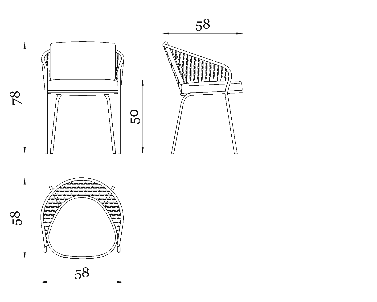 Minerva is a chair with a clean yet impactful design, created to meet the needs of contemporary outdoor living with lightness, durability, and style. Its bronze outdoor metal structure supports a vertical hand-woven rope pattern that wraps around the backrest and armrests with precise, linear rhythm.