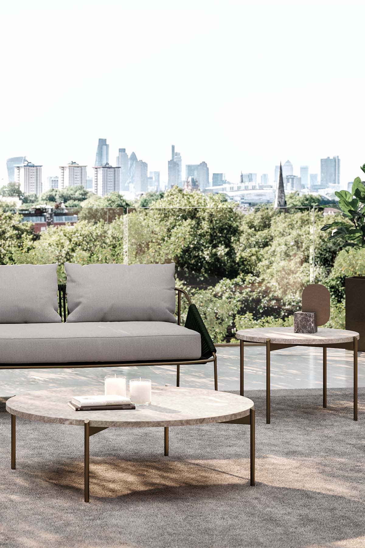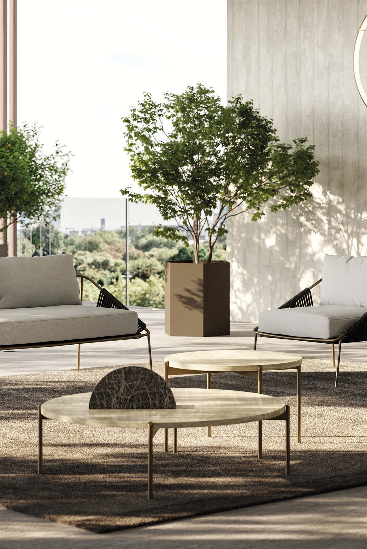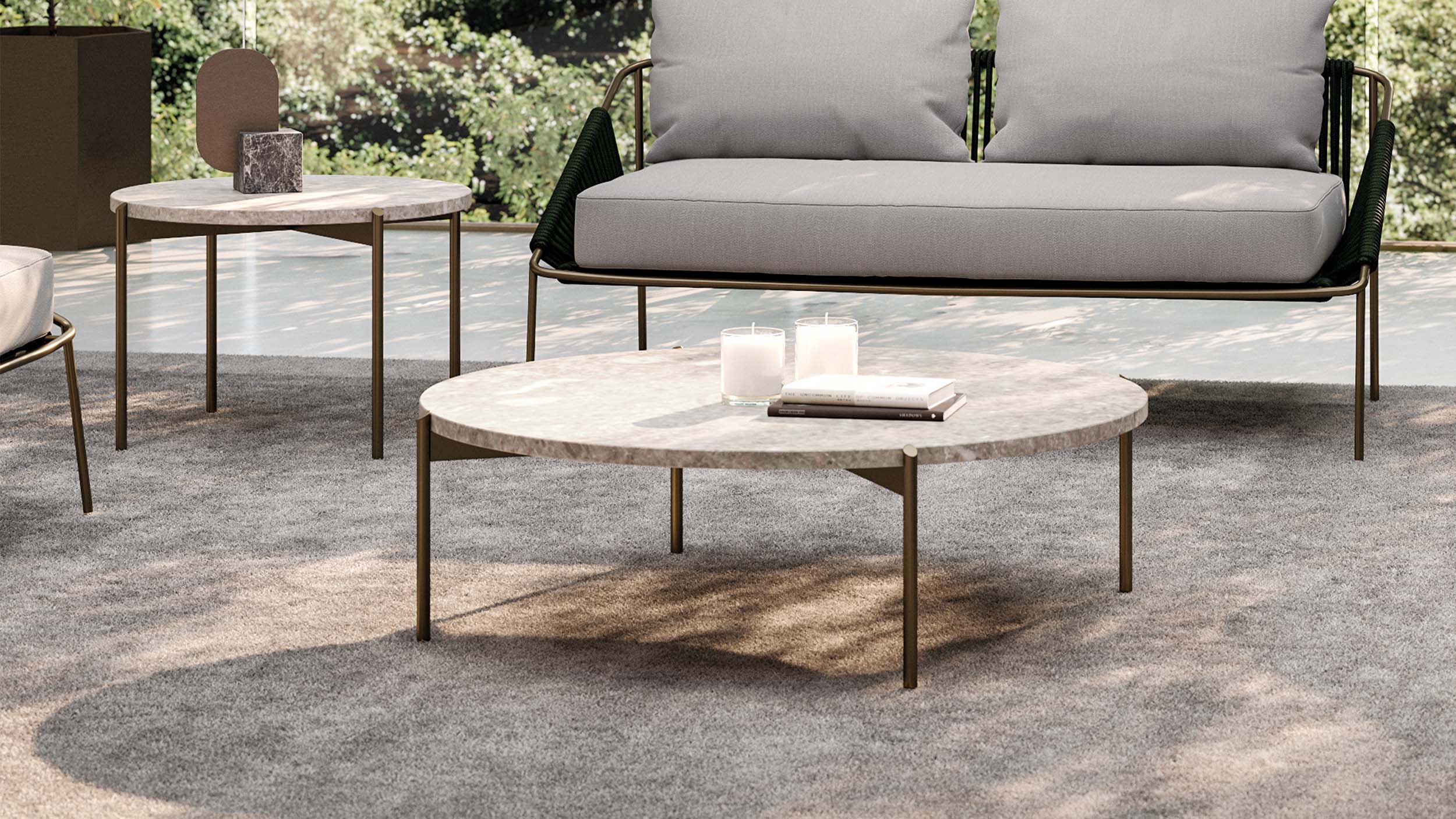 The Apollo coffee table stands out for its essential and refined design, conceived to complement the most exclusive outdoor spaces with balance and subtle elegance. Its metal base defines a clean, lightweight geometry that seamlessly adapts to a variety of outdoor arrangements.
