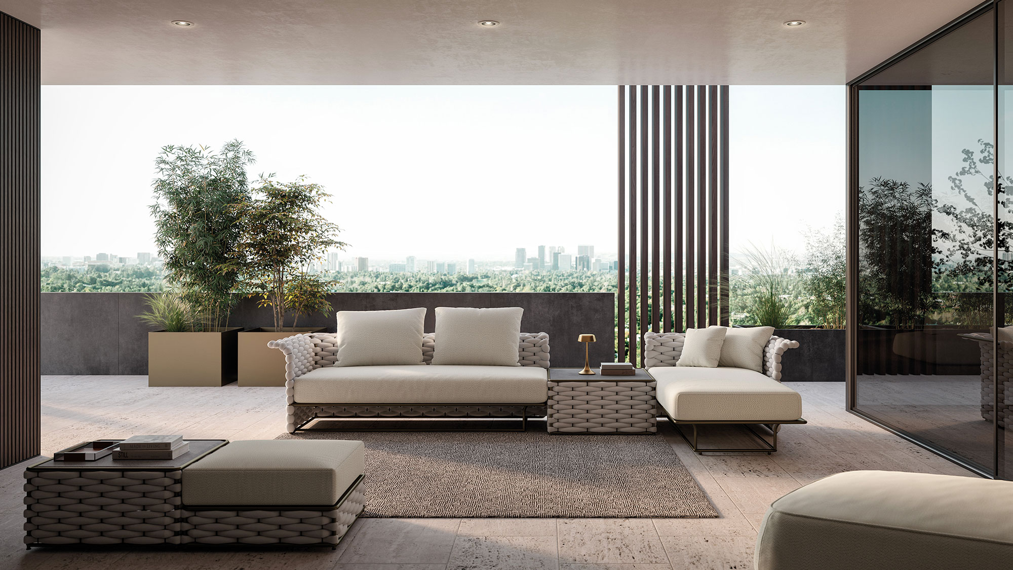 The Soft Ropes collection represents the evolution of the outdoor weaving concept towards maximum comfort. These ropes stand out for their increased diameter and a padded inner core that provides superior softness to the touch. The voluminous craftsmanship simulates the warmth and coziness of indoor fabrics, transforming outdoor sofas and armchairs into havens of pure relaxation.