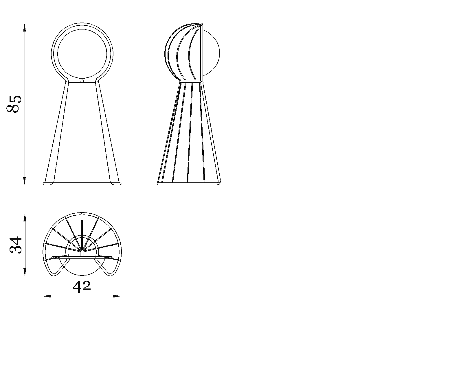 The conical structure in bronze outdoor metal is fully hand-woven, creating a three-dimensional volume rich in rhythm and texture. The upper ring holds a globe that emits a warm, soft light, adjustable in intensity thanks to the touch-sensitive system with tap-on activation.