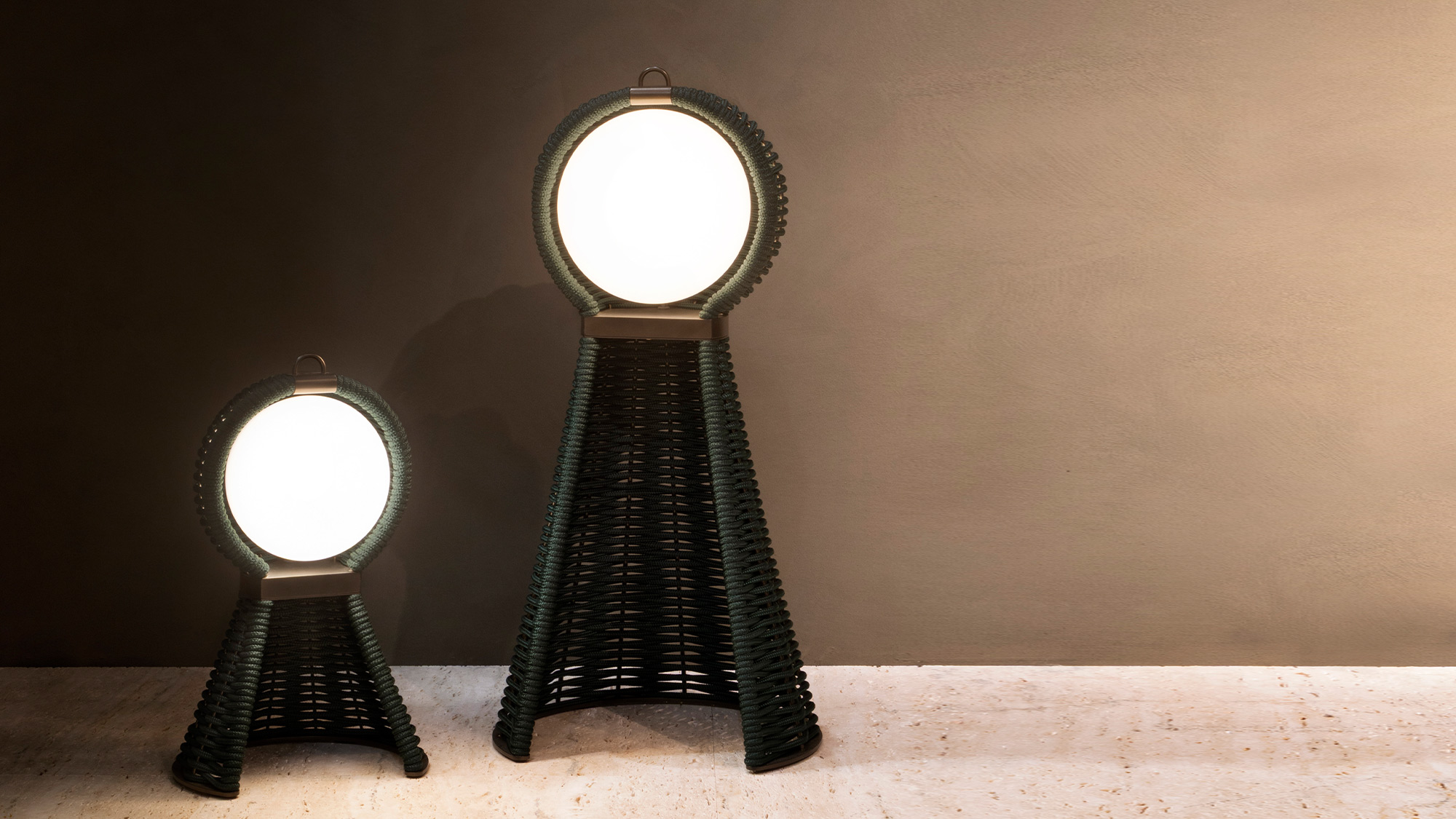 Rechargeable and available in two sizes, Eos offers placement flexibility and versatile use, softly illuminating lounges, terraces and outdoor settings with distinctive character.