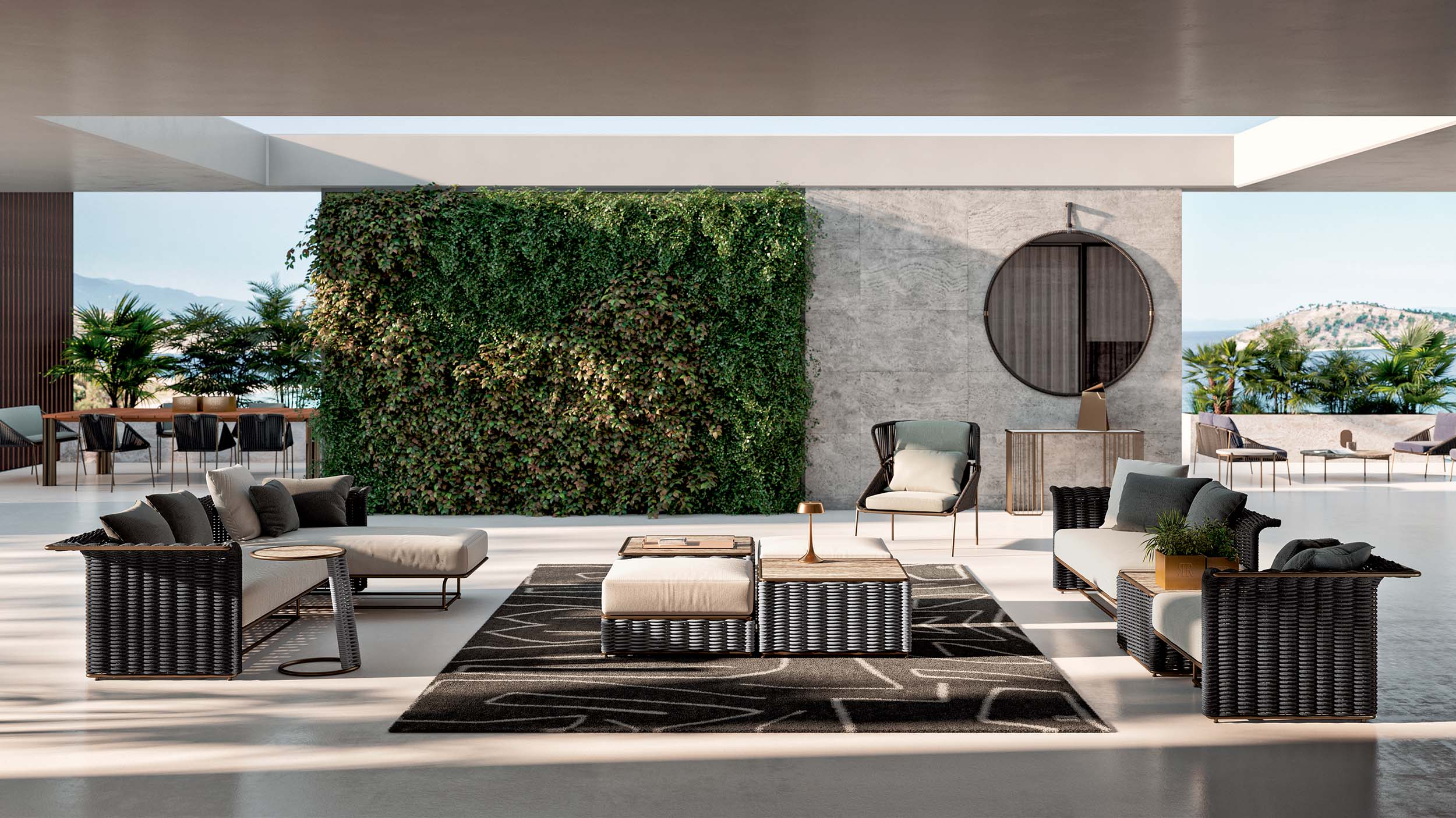 The Soft Ropes collection represents the evolution of the outdoor weaving concept towards maximum comfort. These ropes stand out for their increased diameter and a padded inner core that provides superior softness to the touch. The voluminous craftsmanship simulates the warmth and coziness of indoor fabrics, transforming outdoor sofas and armchairs into havens of pure relaxation.
