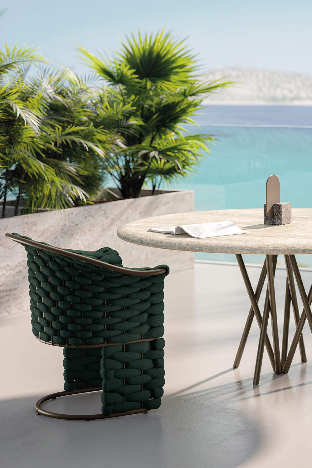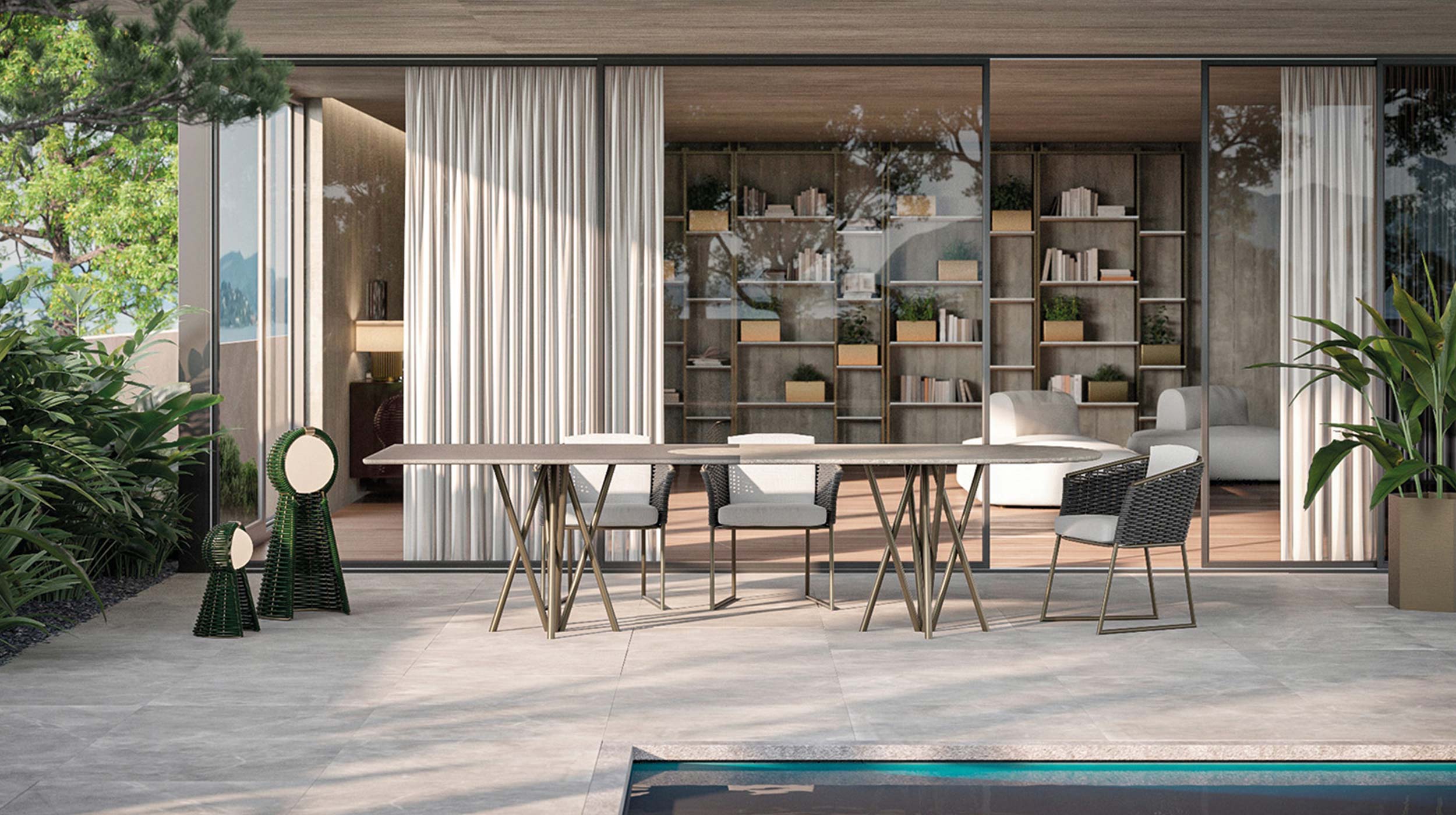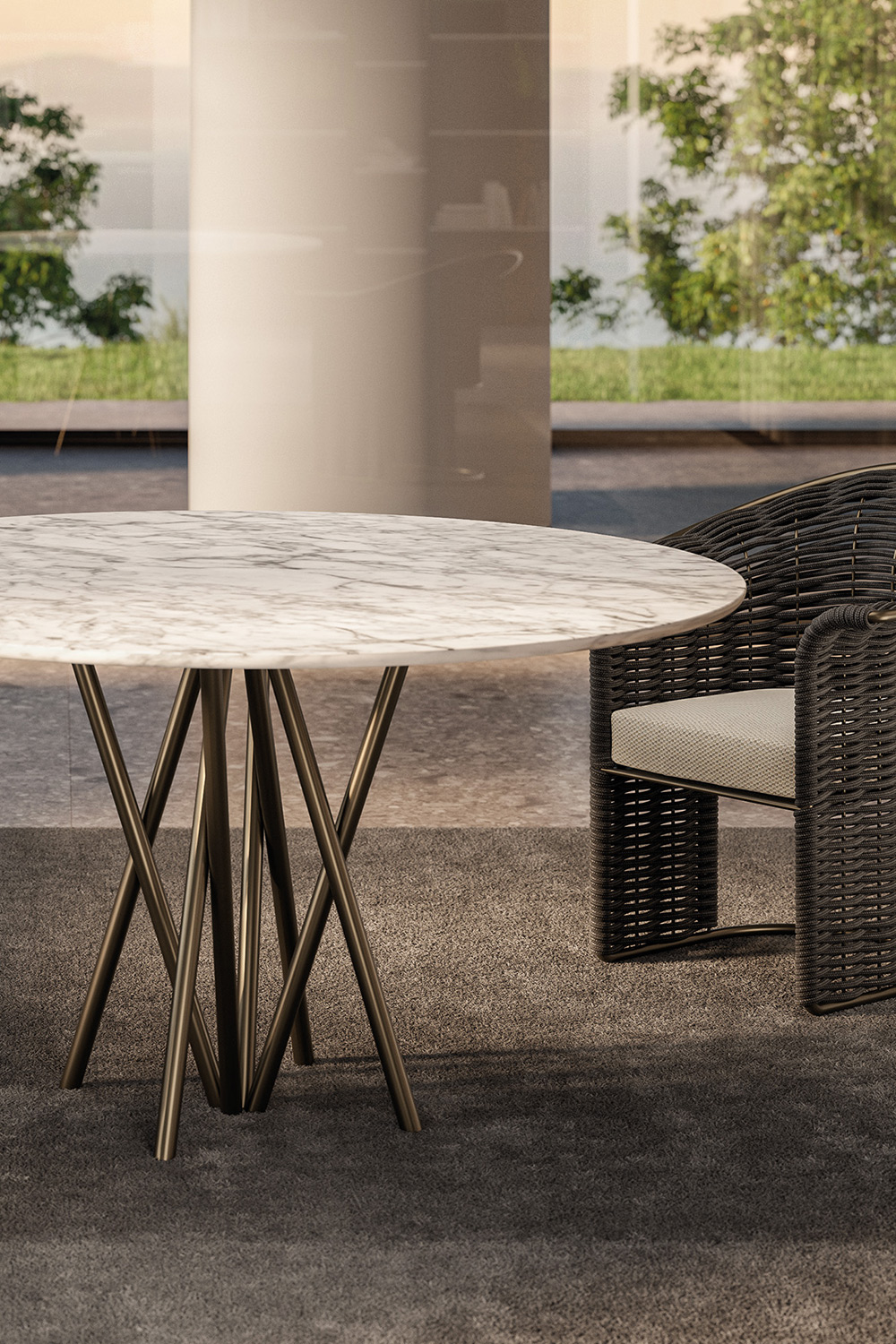 Designed to withstand outdoor conditions without compromising on elegance, Mikado is the ideal table for those seeking a contemporary design piece that interacts with both architectural surroundings and the nature around it.