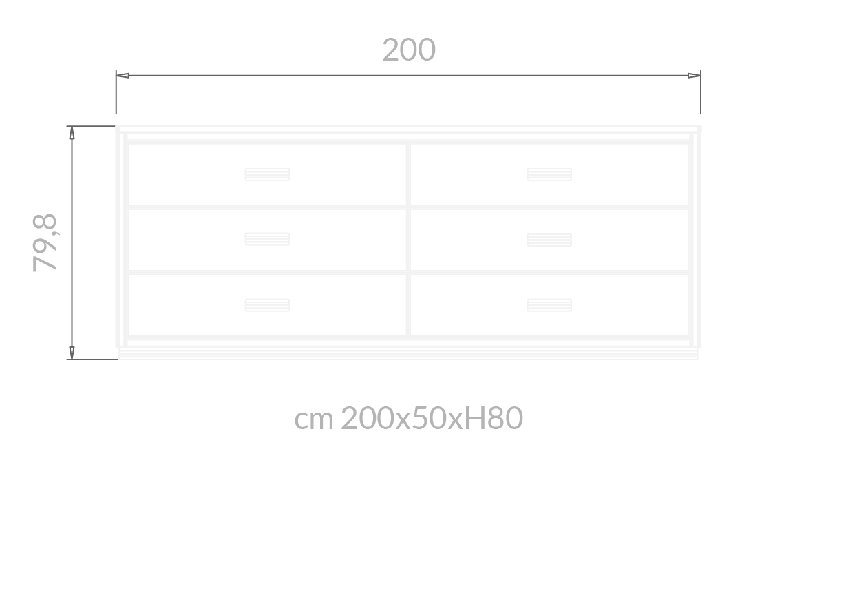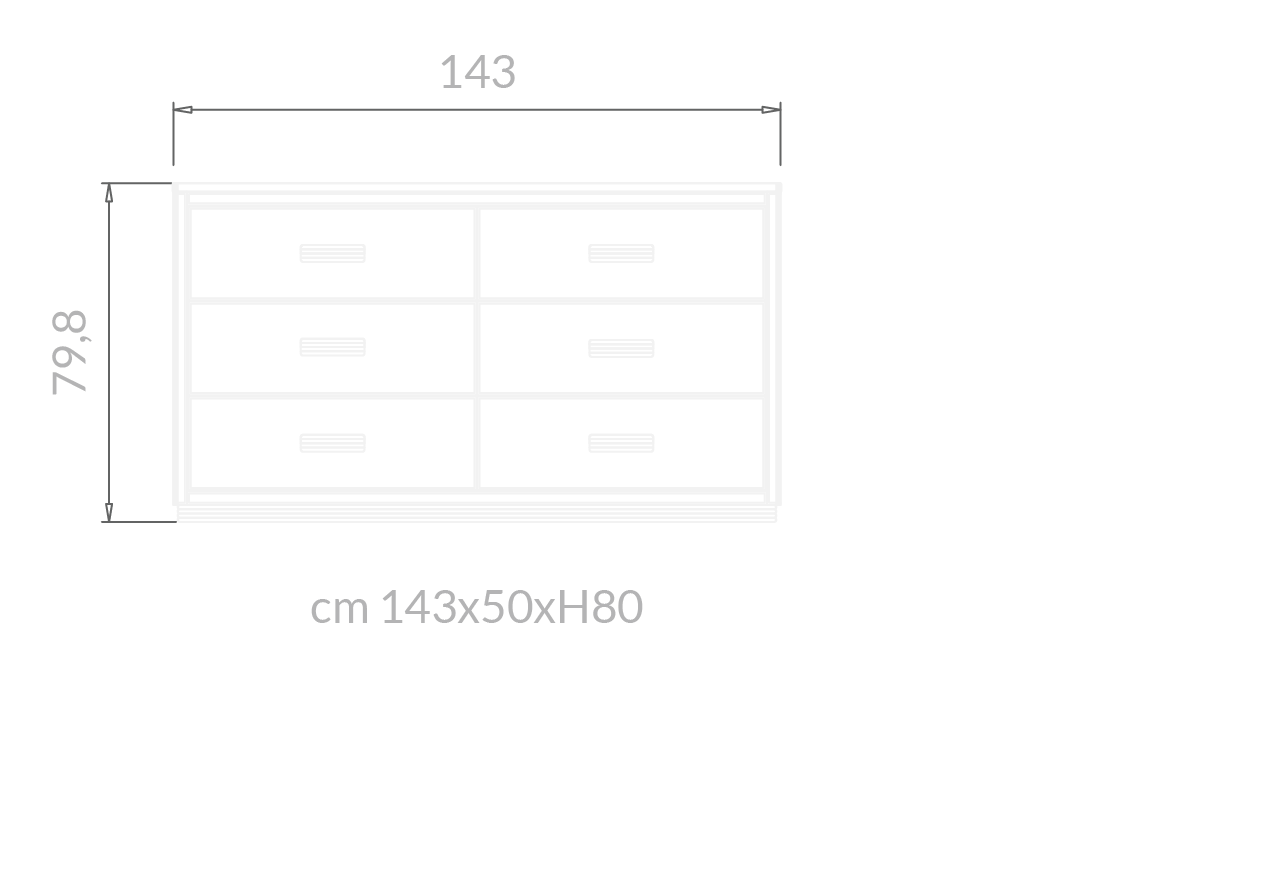 Comò a 6 cassetti in due diverse larghezze, rivestito in pelle con piano in marmo e dettagli in metallo.