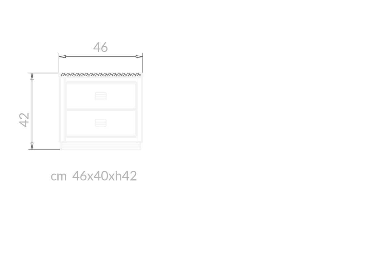 Collezione di comodini a 2 o 3 cassetti in due diverse larghezze, rivestito in pelle con piano in marmo e dettagli in metallo.