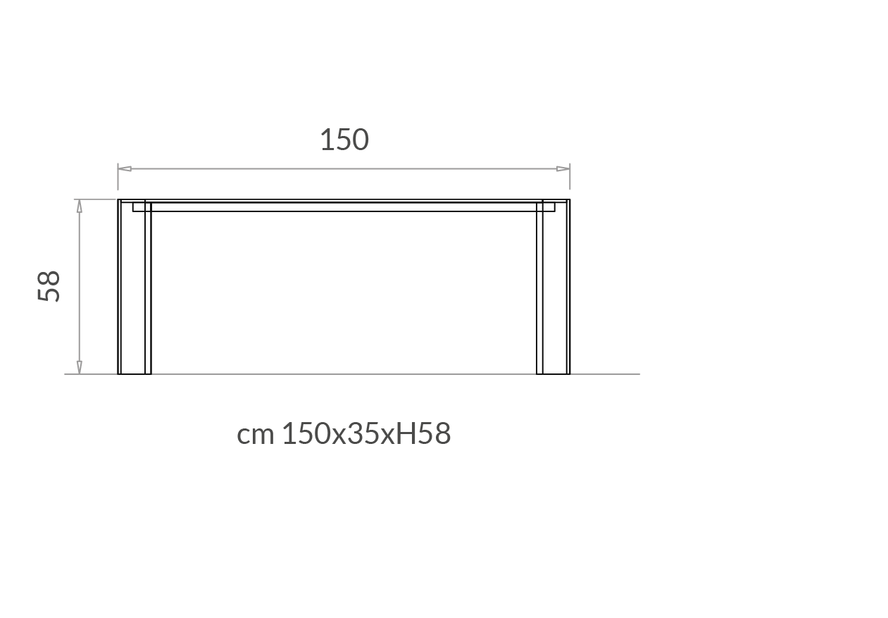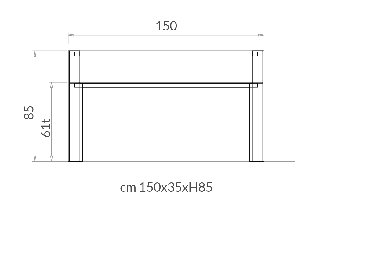 Linee essenziali compongono la console. Due piani in vetro incorniciati dalla struttura in bronzo.