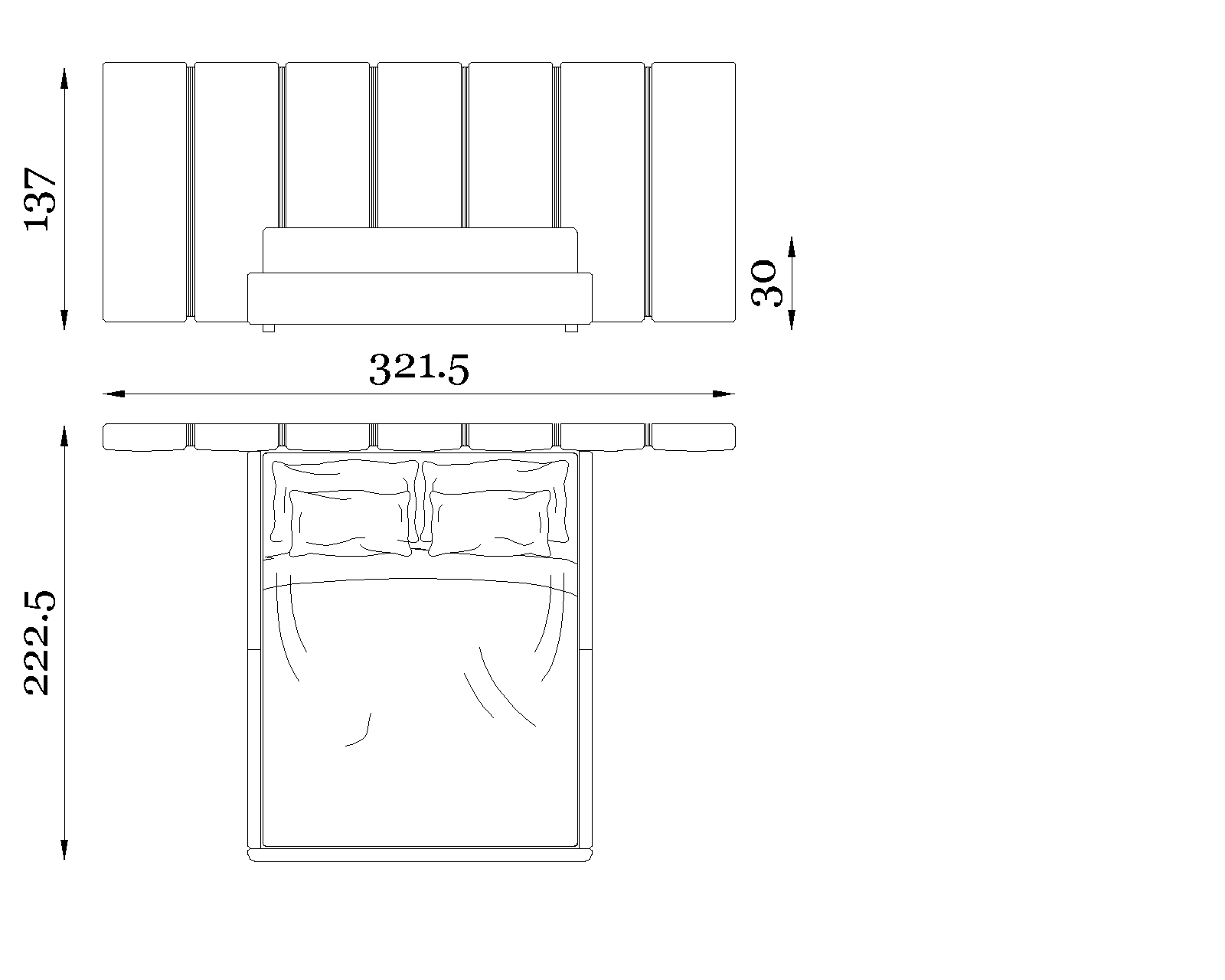Il letto Club si caratterizza per l’imponente testiera imbottita, scandita da pannelli verticali che disegnano un ritmo architettonico elegante e distintivo. Le superfici morbide, rivestite in materiali pregiati, sono intercalate da raffinati inserti metallici che aggiungono luminosità e sottolineano l’equilibrio delle proporzioni.