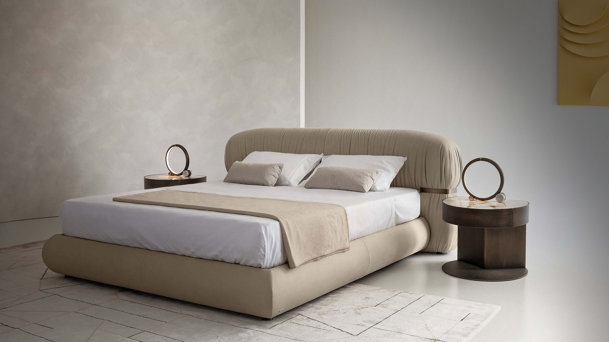 Il letto Fandango presenta particolari studiati con cura dalle linee morbide, delicate e avvolgenti, che ne fanno un prodotto di grande contemporaneità.