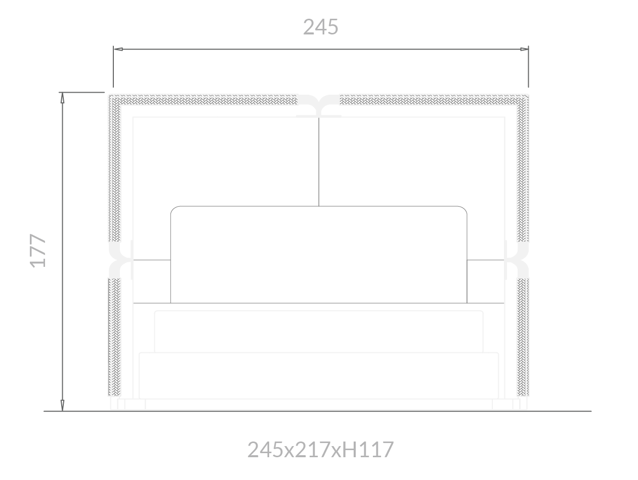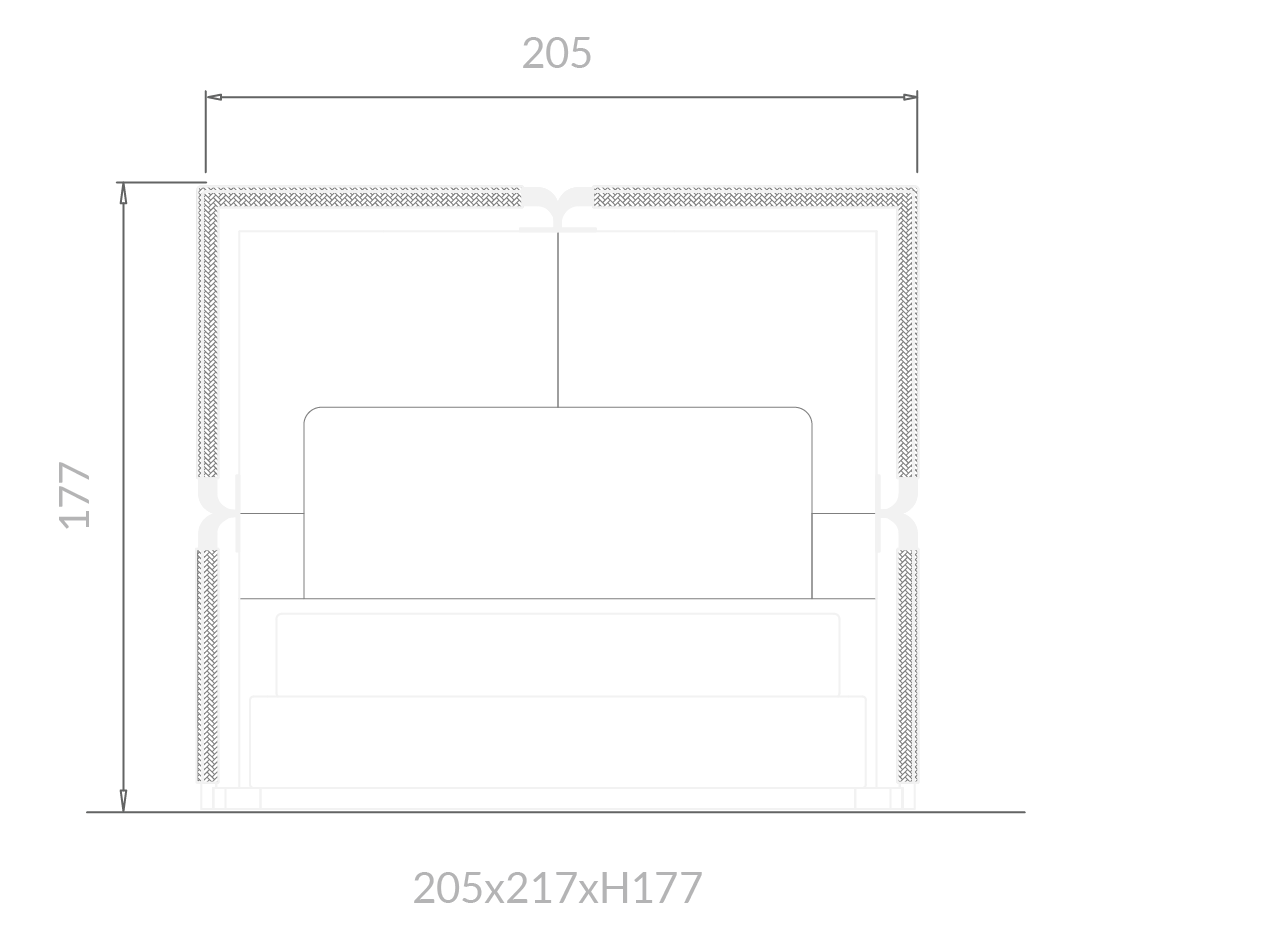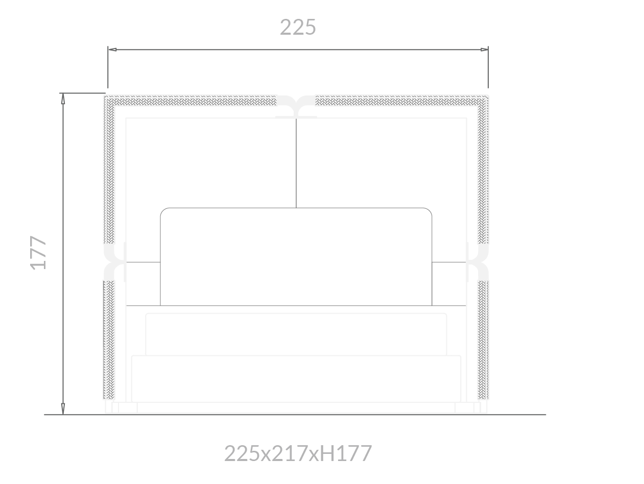 Testata imbottita con cornice in metallo rivestita in pelle liscia o stampata. Dettagli in bronzo. Giroletto rivestito.
