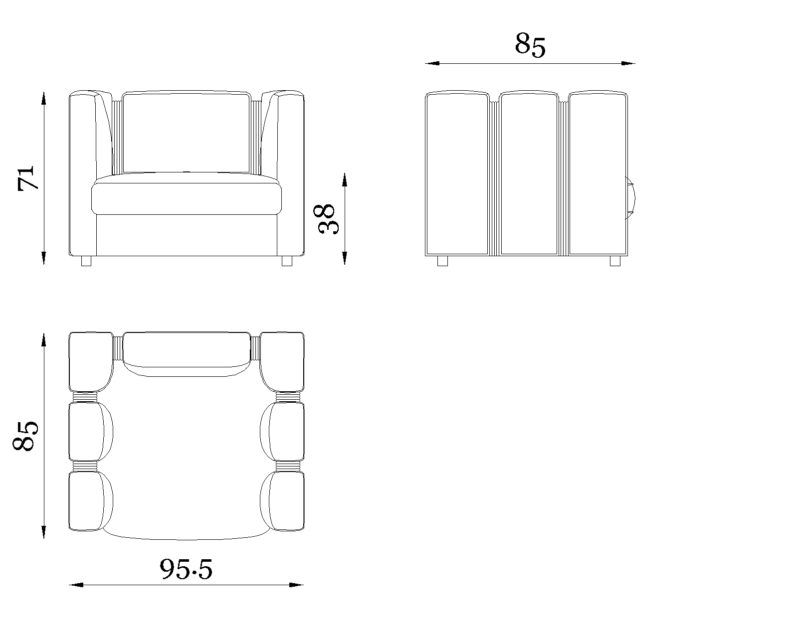 Poltrona caratterizzata dalla trafila in ottone spazzolato o bronzo che intercalata alla pelle crea una piacevole modularità.